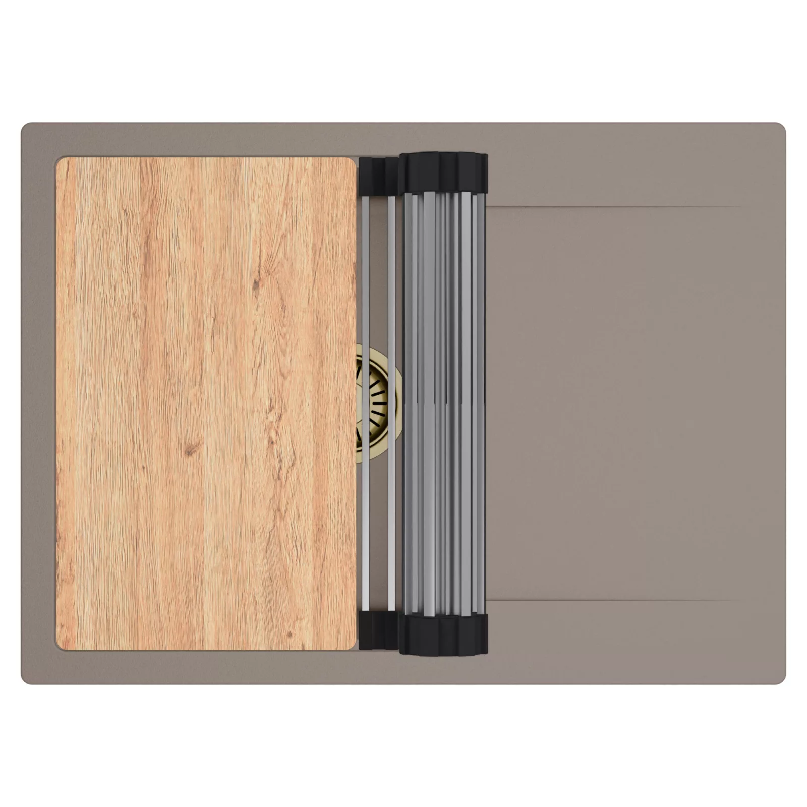 HD Onyx Tortora 68-XL egymedencés mosogatótálca szett, vágódeszkával és csepegtetőráccsal, tortora