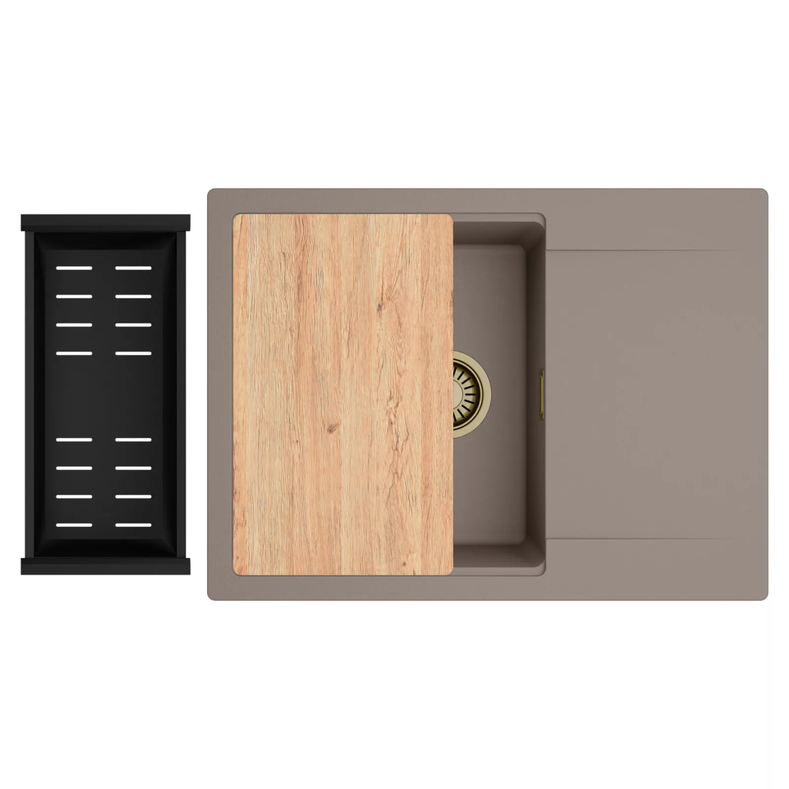 HD Onyx Tortora 68-XL egymedencés mosogatótálca szett, vágódeszkával és csepegtetőkosárral, tortora