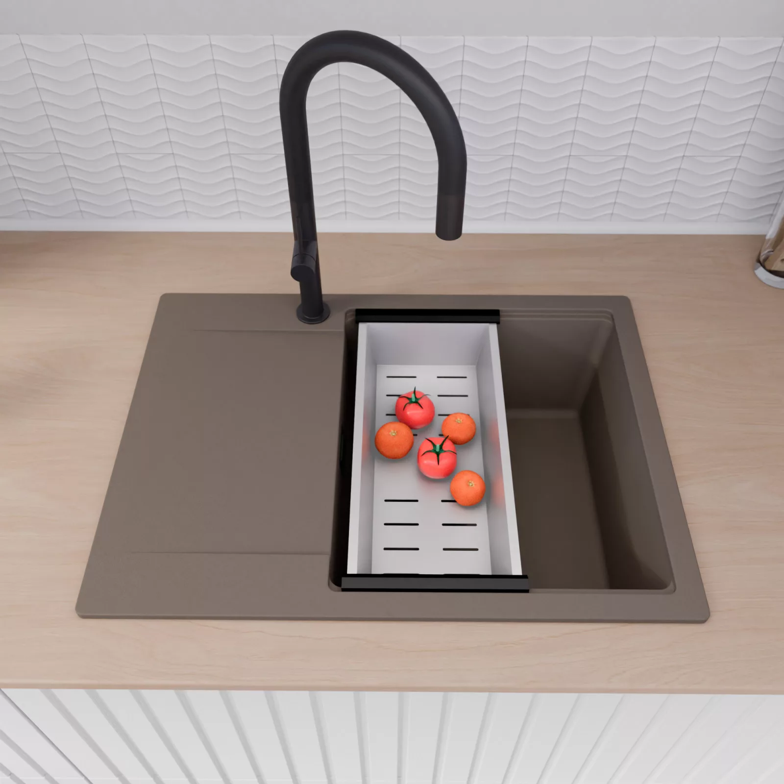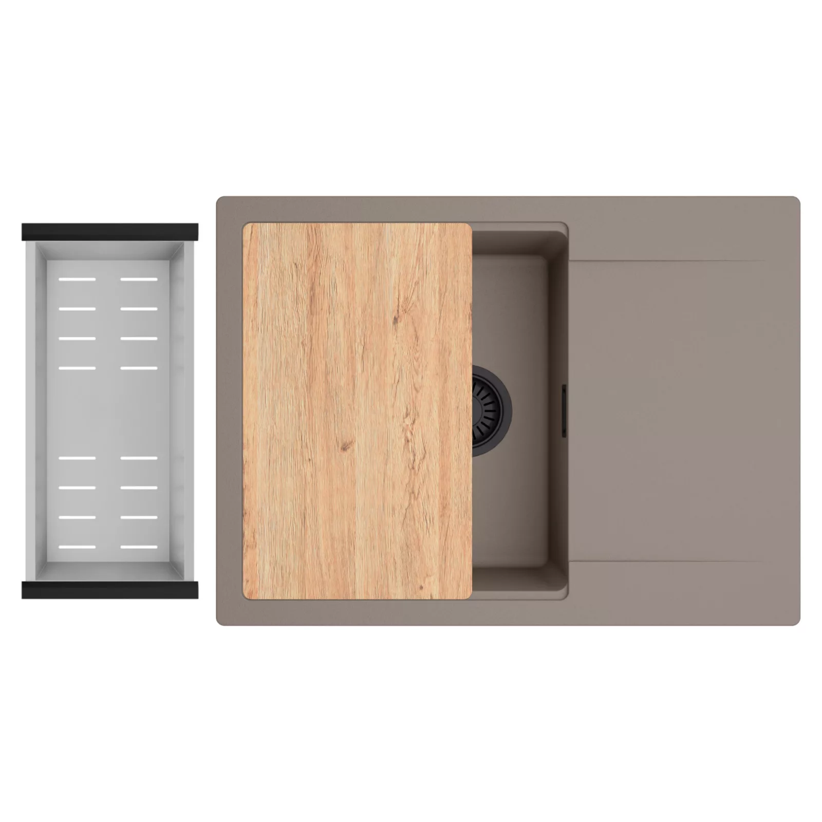 HD Onyx Tortora 68-XL egymedencés mosogatótálca szett, vágódeszkával és csepegtetőkosárral, tortora