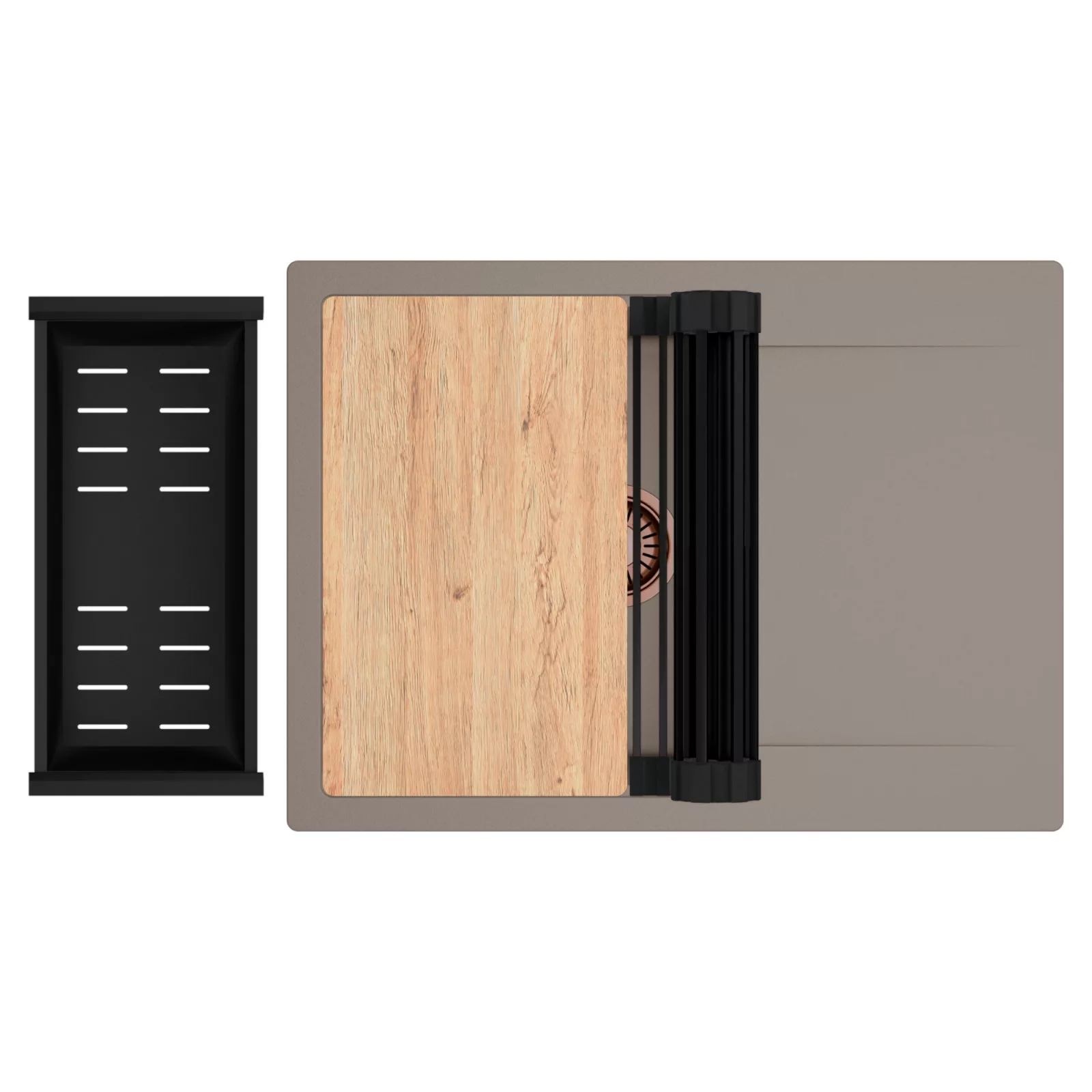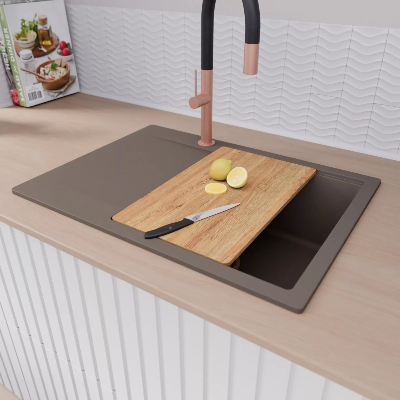 HD Onyx Tortora 68-XL egymedencés mosogatótálca szett, vágódeszkával, csepegtetőráccsal és kosárral, tortora