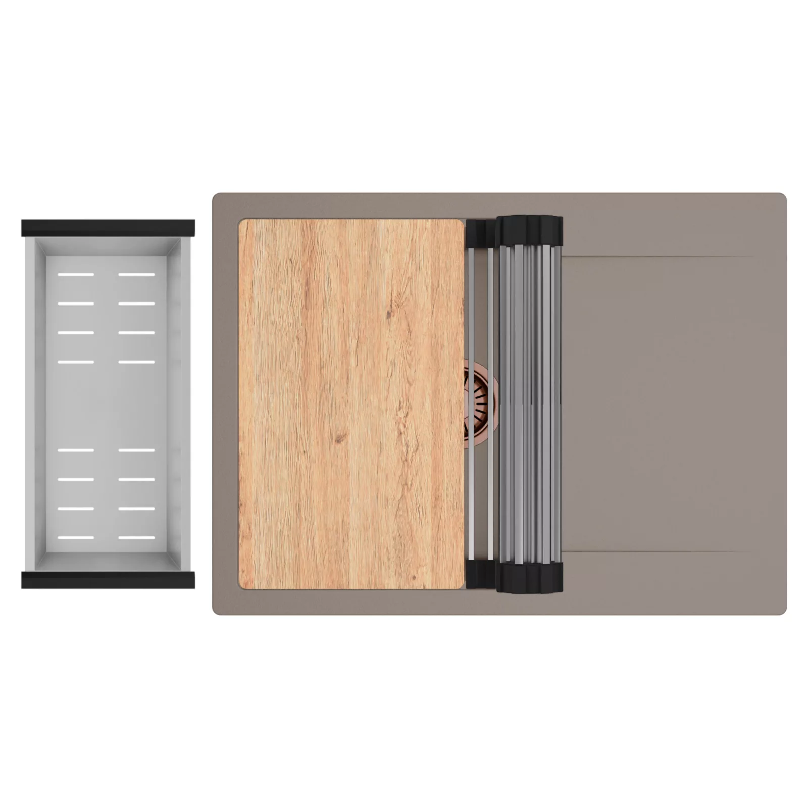 HD Onyx Tortora 68-XL egymedencés mosogatótálca szett, vágódeszkával, csepegtetőráccsal és kosárral, tortora
