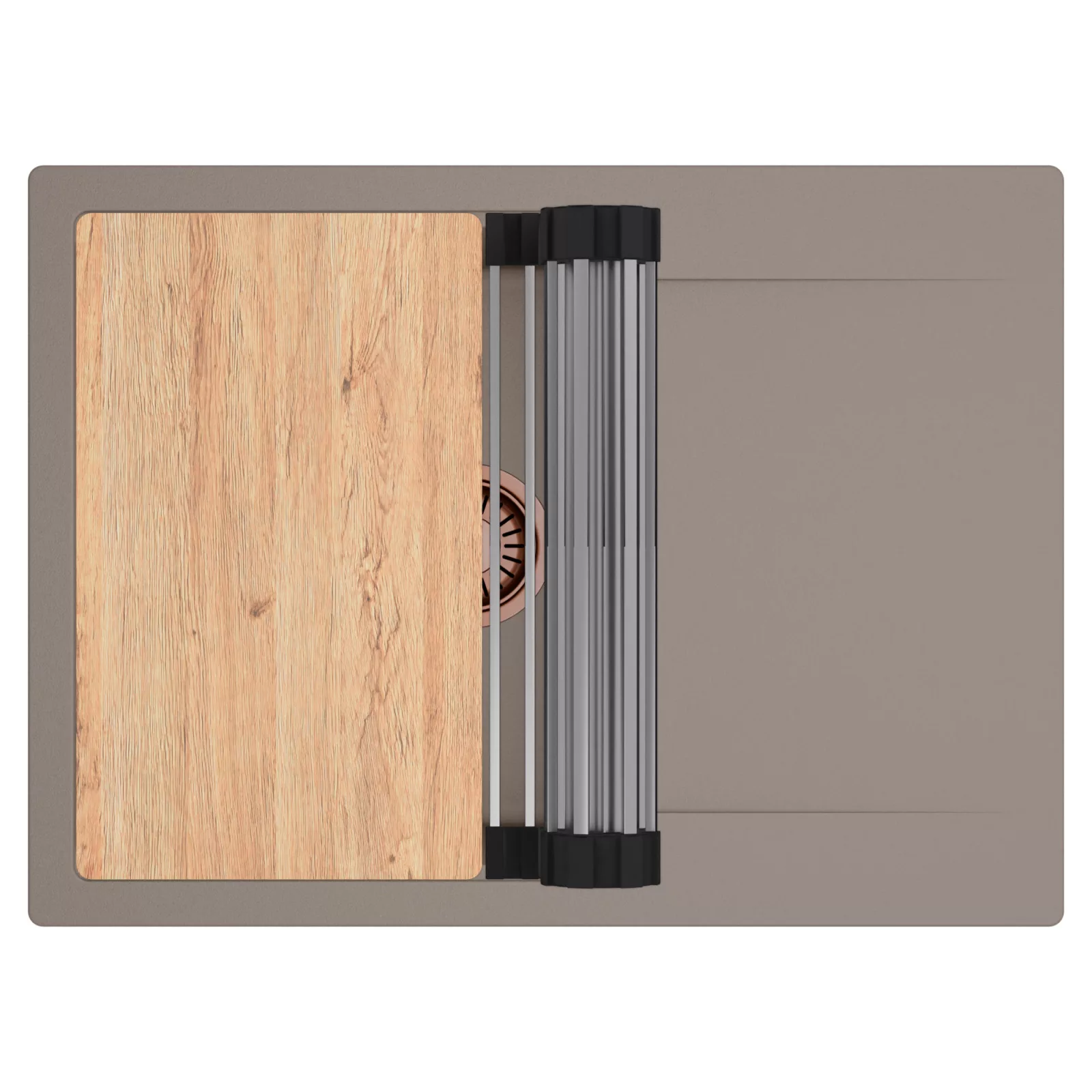 HD Onyx Tortora 68-XL egymedencés mosogatótálca szett, vágódeszkával és csepegtetőráccsal, tortora