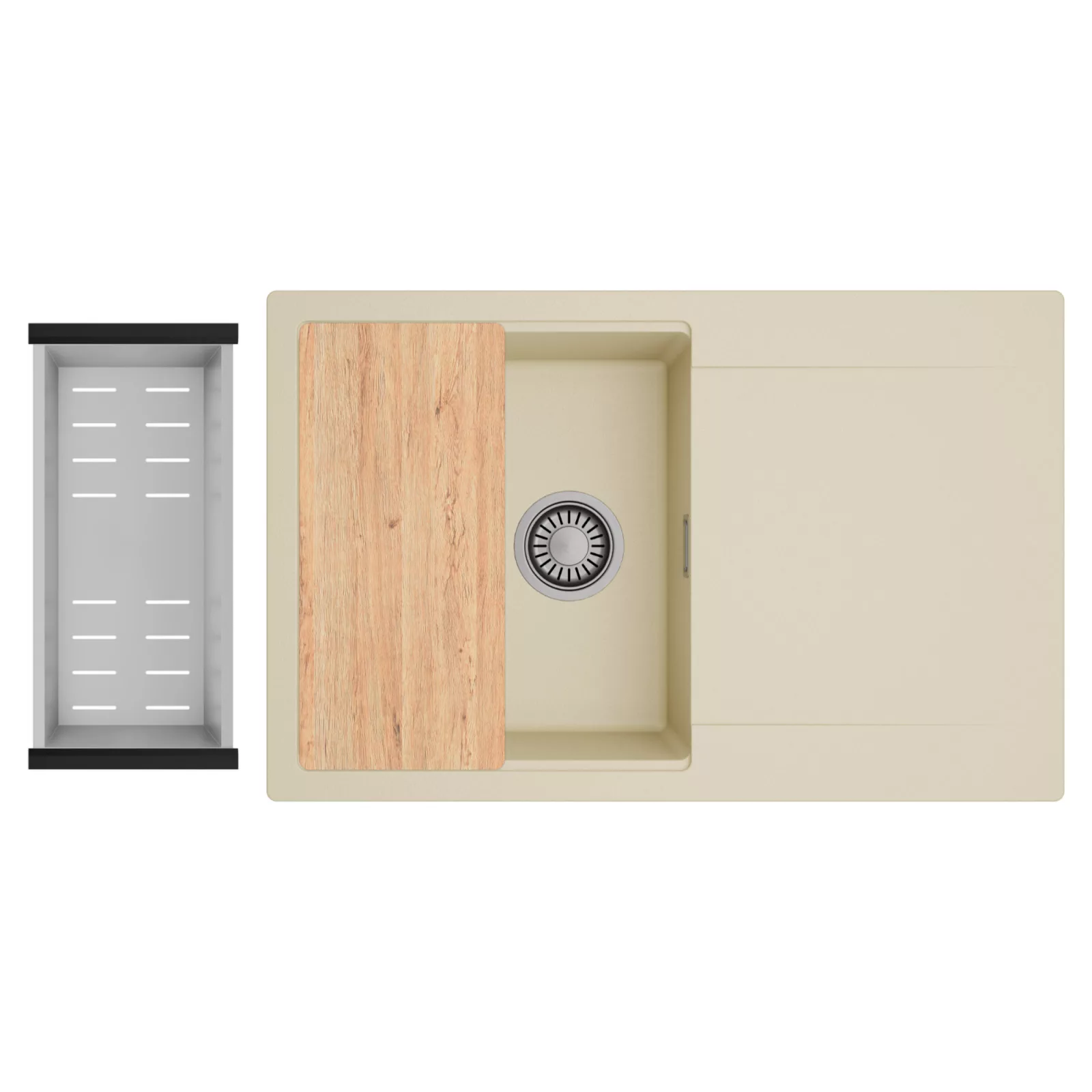 HD Onyx Beige 78 egymedencés mosogatótálca szett, vágódeszkával és csepegtetőkosárral, soft bézs