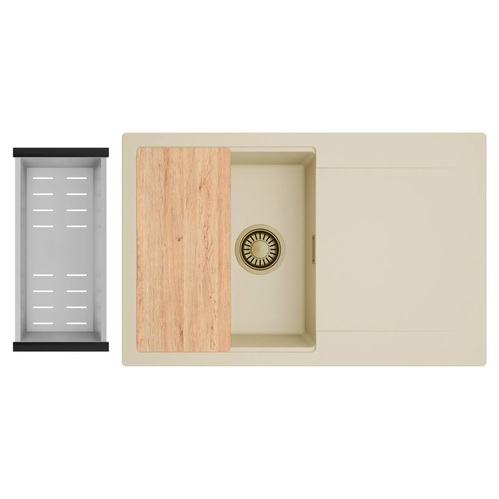 HD Onyx Beige 78 egymedencés mosogatótálca szett, vágódeszkával és csepegtetőkosárral, soft bézs