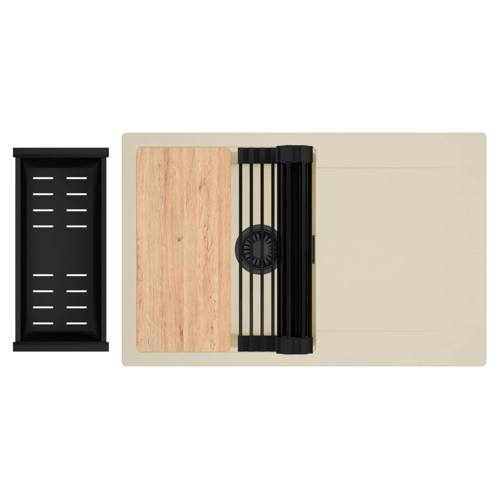 HD Onyx Beige 78 egymedencés mosogatótálca szett, vágódeszkával, csepegtetőráccsal és kosárral, soft bézs