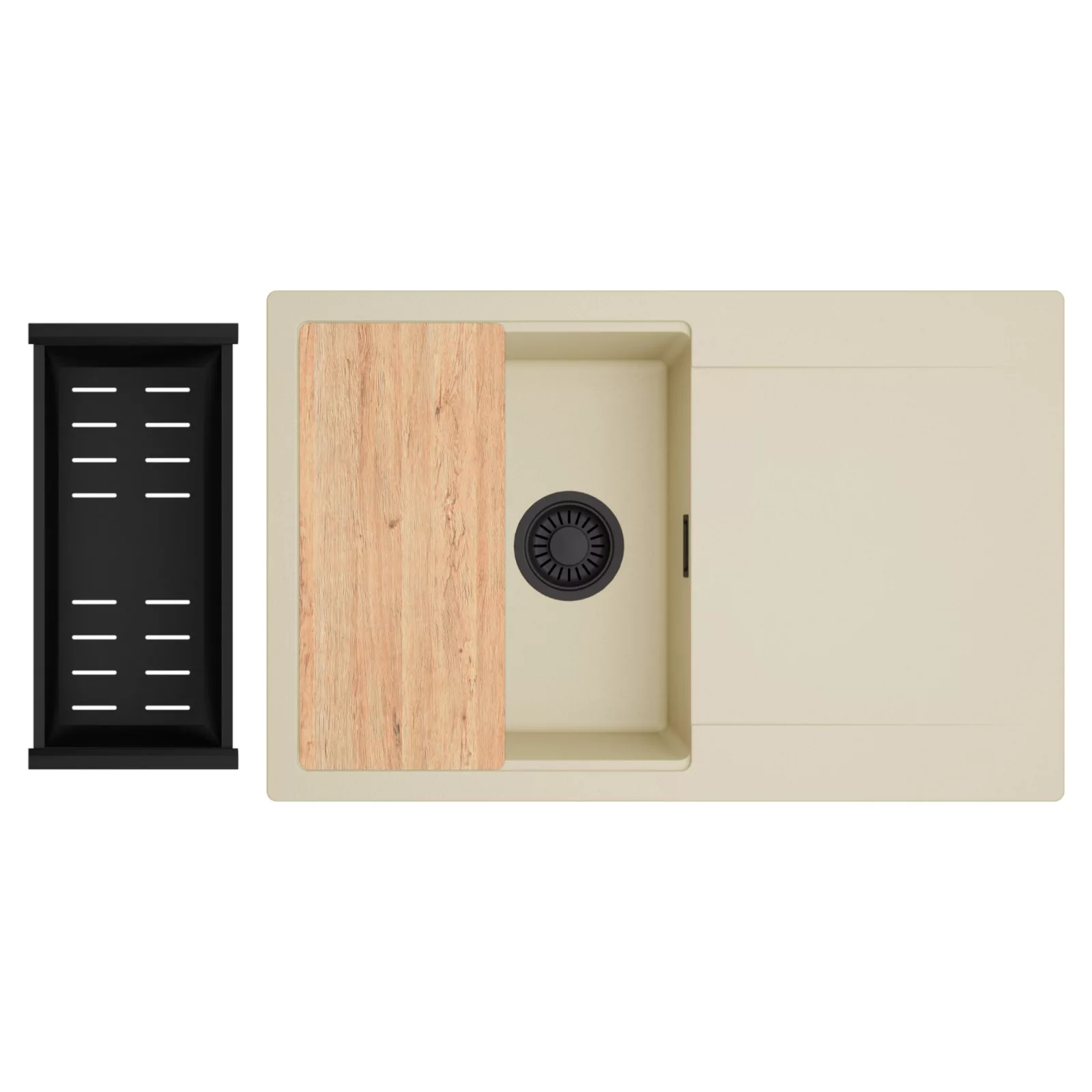 HD Onyx Beige 78 egymedencés mosogatótálca szett, vágódeszkával és csepegtetőkosárral, soft bézs