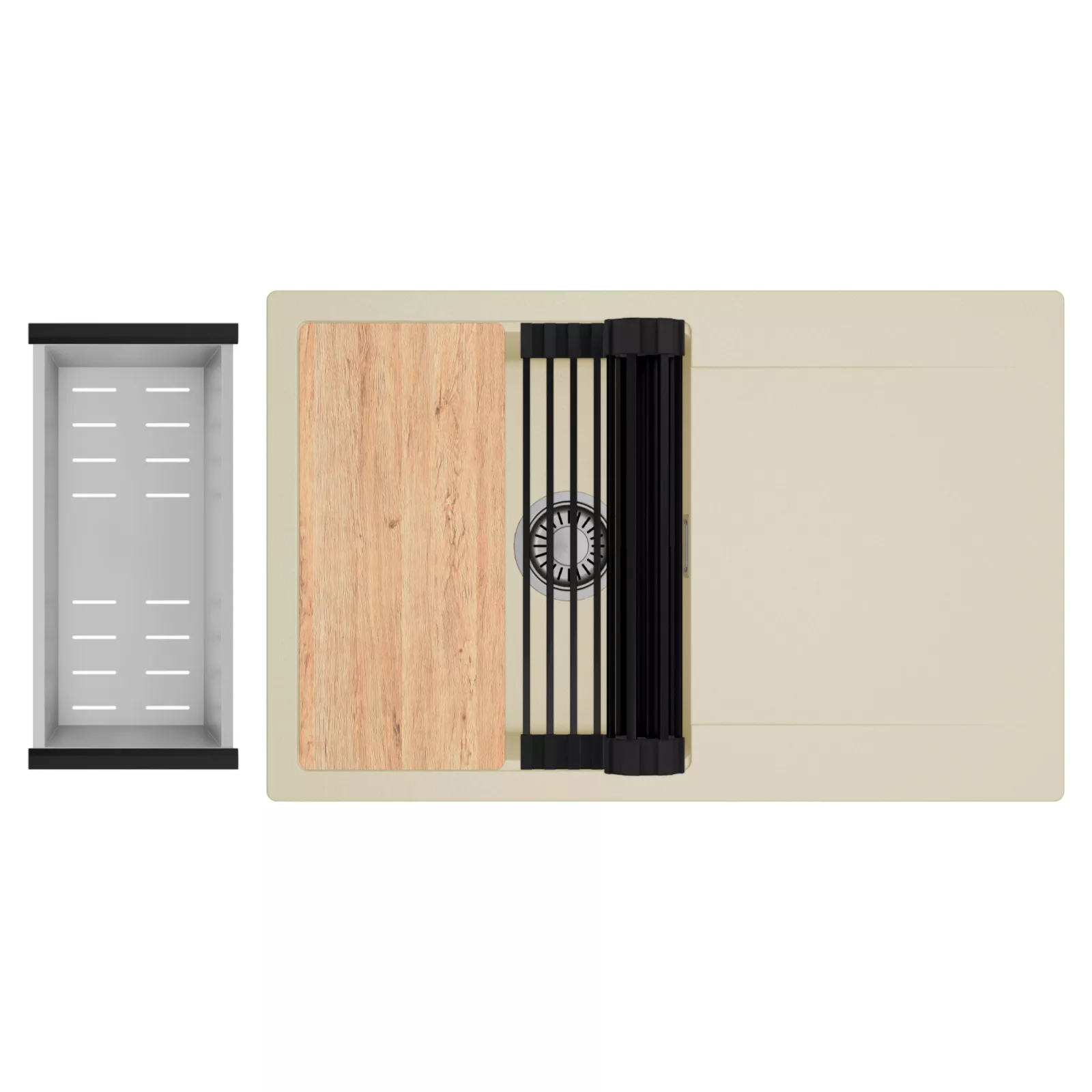 HD Onyx Beige 78 egymedencés mosogatótálca szett, vágódeszkával, csepegtetőráccsal és kosárral, soft bézs
