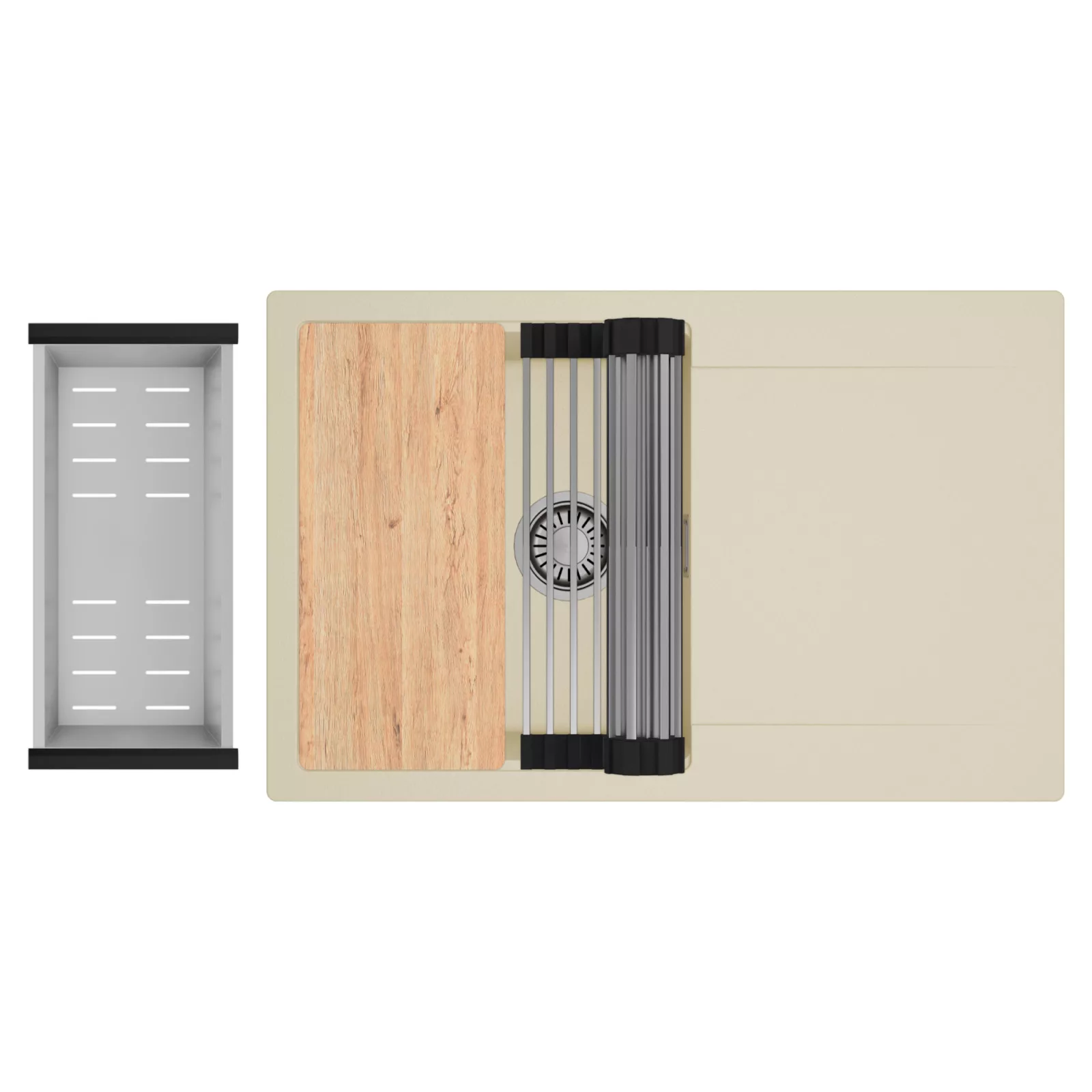 HD Onyx Beige 78 egymedencés mosogatótálca szett, vágódeszkával, csepegtetőráccsal és kosárral, soft bézs