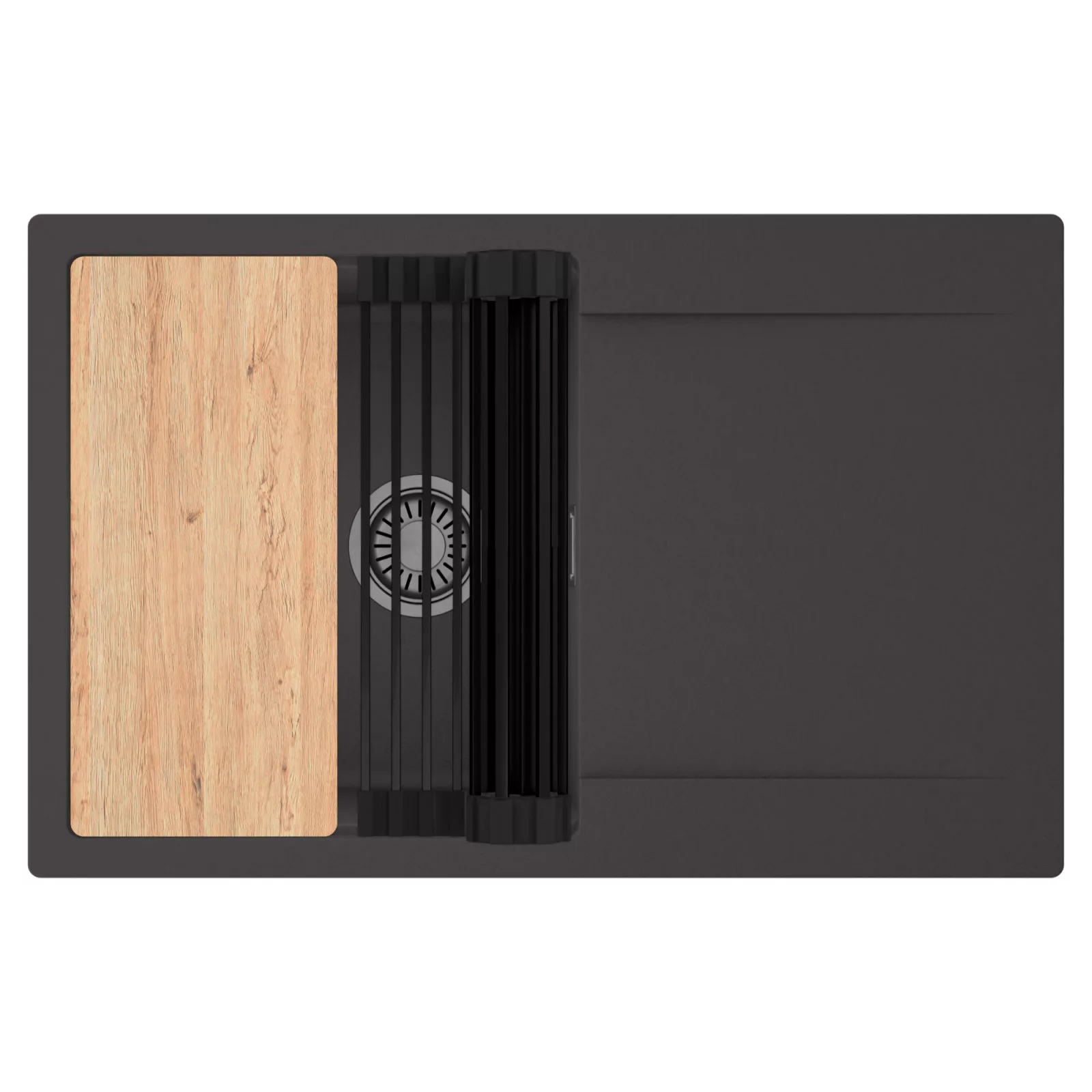 HD Onyx 78 egymedencés mosogatótálca szett, vágódeszkával és csepegtetőráccsal, matt antracit