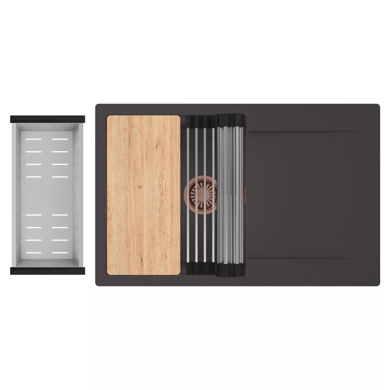 HD Onyx 78 egymedencés mosogatótálca szett, vágódeszkával, csepegtetőráccsal és kosárral, matt antracit