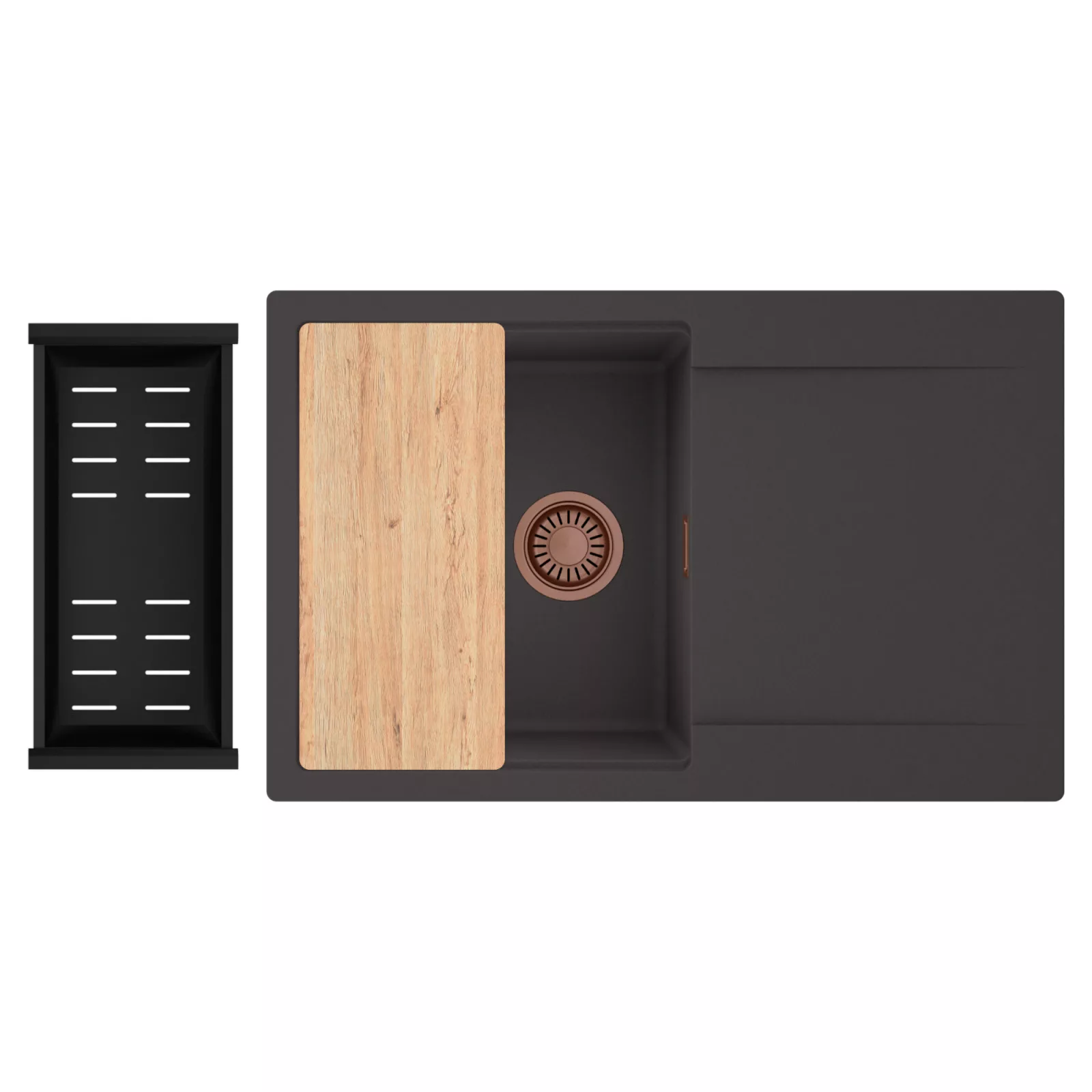 HD Onyx 78 egymedencés mosogatótálca szett, vágódeszkával és csepegtetőkosárral, matt antracit