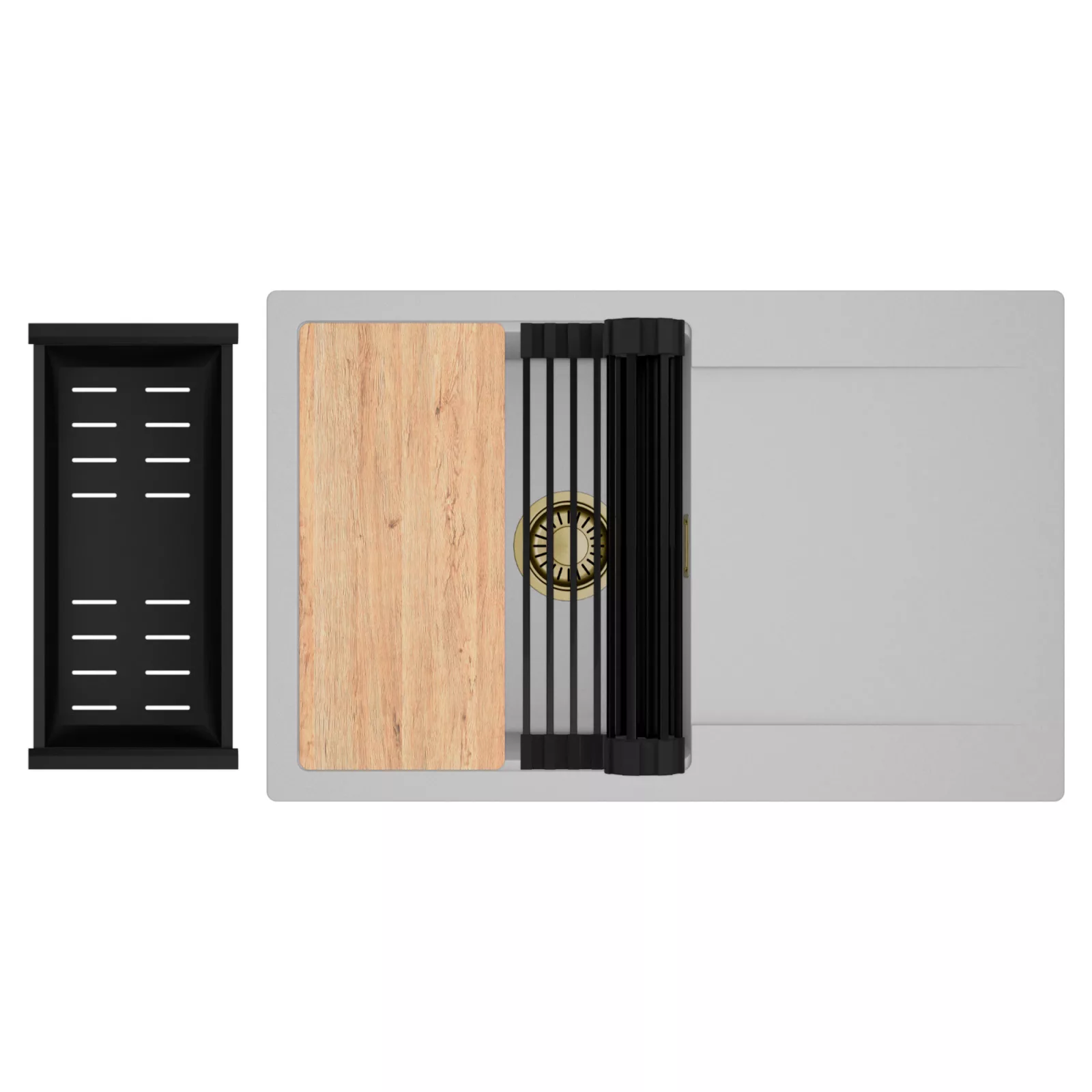 HD Onyx Grey 78 egymedencés mosogatótálca szett, vágódeszkával, csepegtetőráccsal és kosárral, alpesi szürke