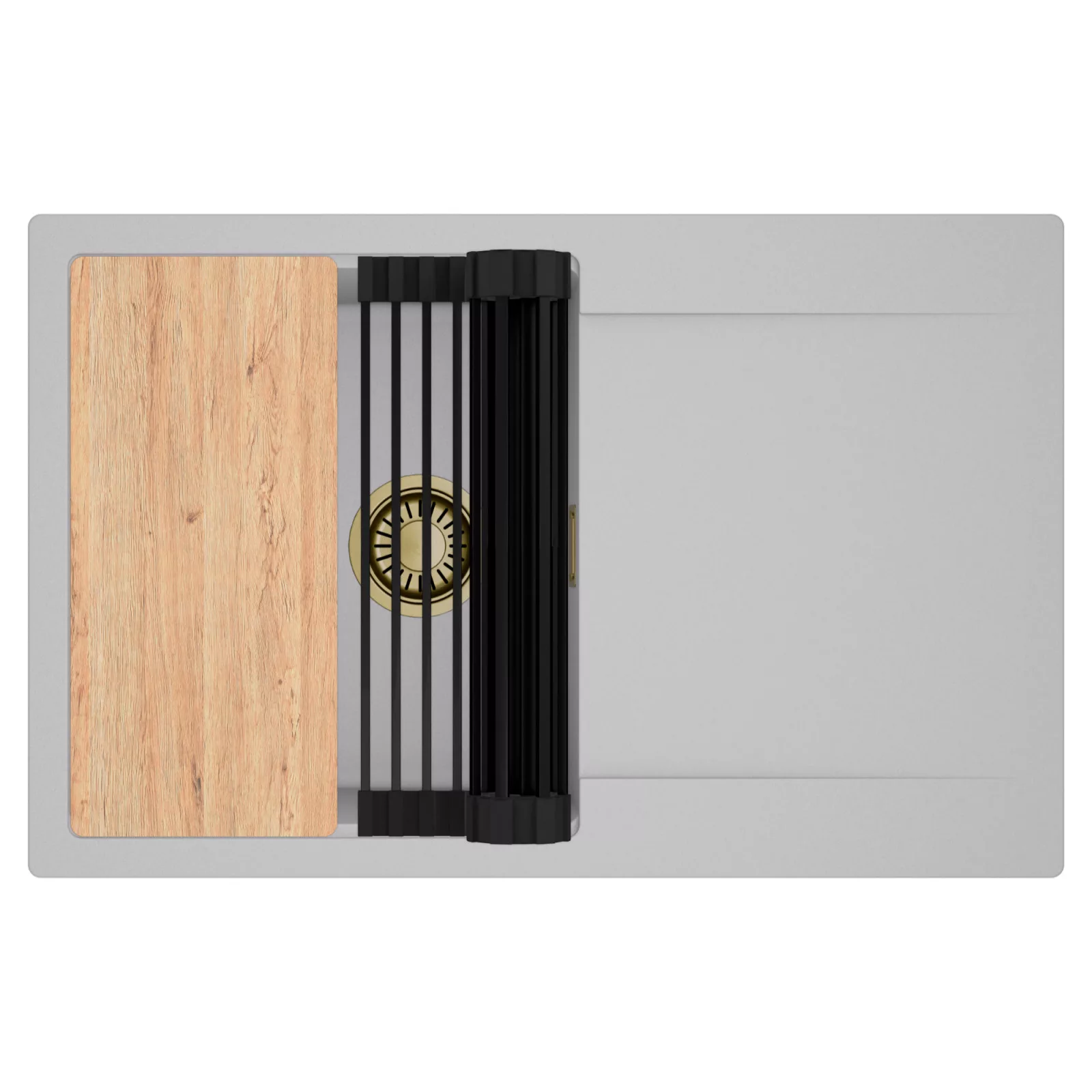 HD Onyx Grey 78 egymedencés mosogatótálca szett, vágódeszkával és csepegtetőráccsal, alpesi szürke