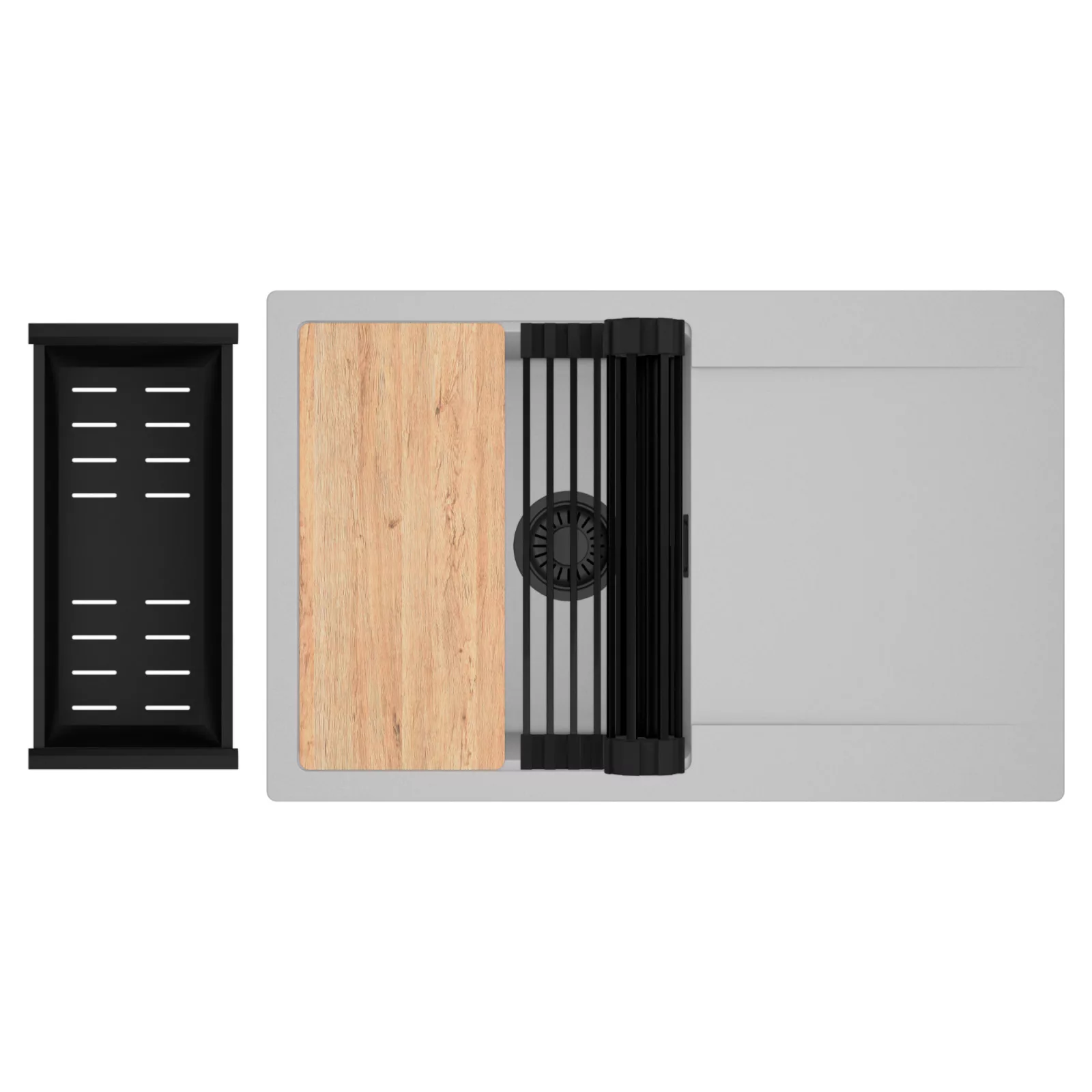 HD Onyx Grey 78 egymedencés mosogatótálca szett, vágódeszkával, csepegtetőráccsal és kosárral, alpesi szürke