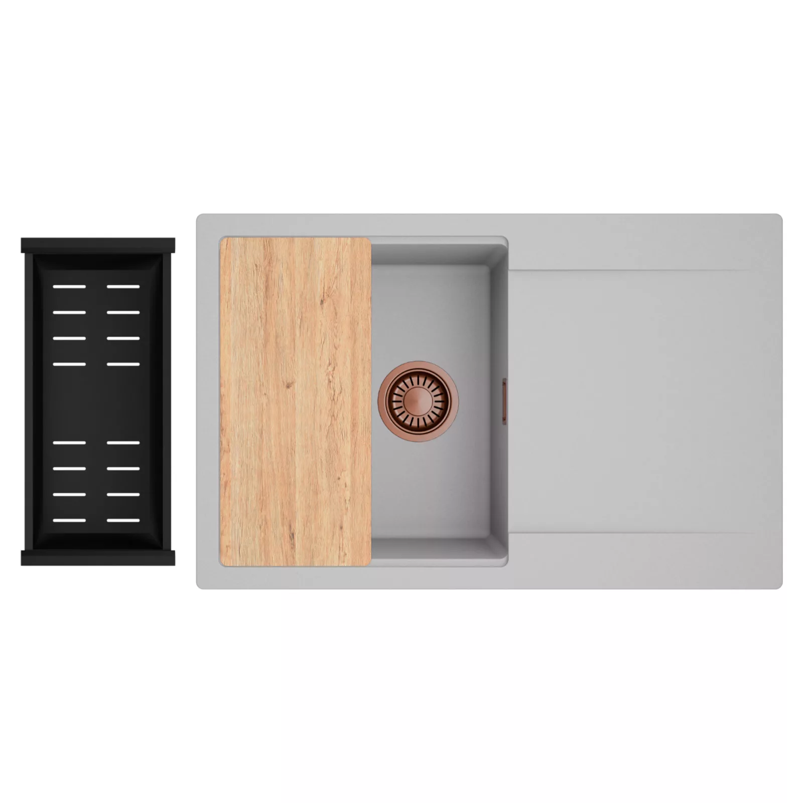 HD Onyx Grey 78 egymedencés mosogatótálca szett, vágódeszkával és csepegtetőkosárral, alpesi szürke