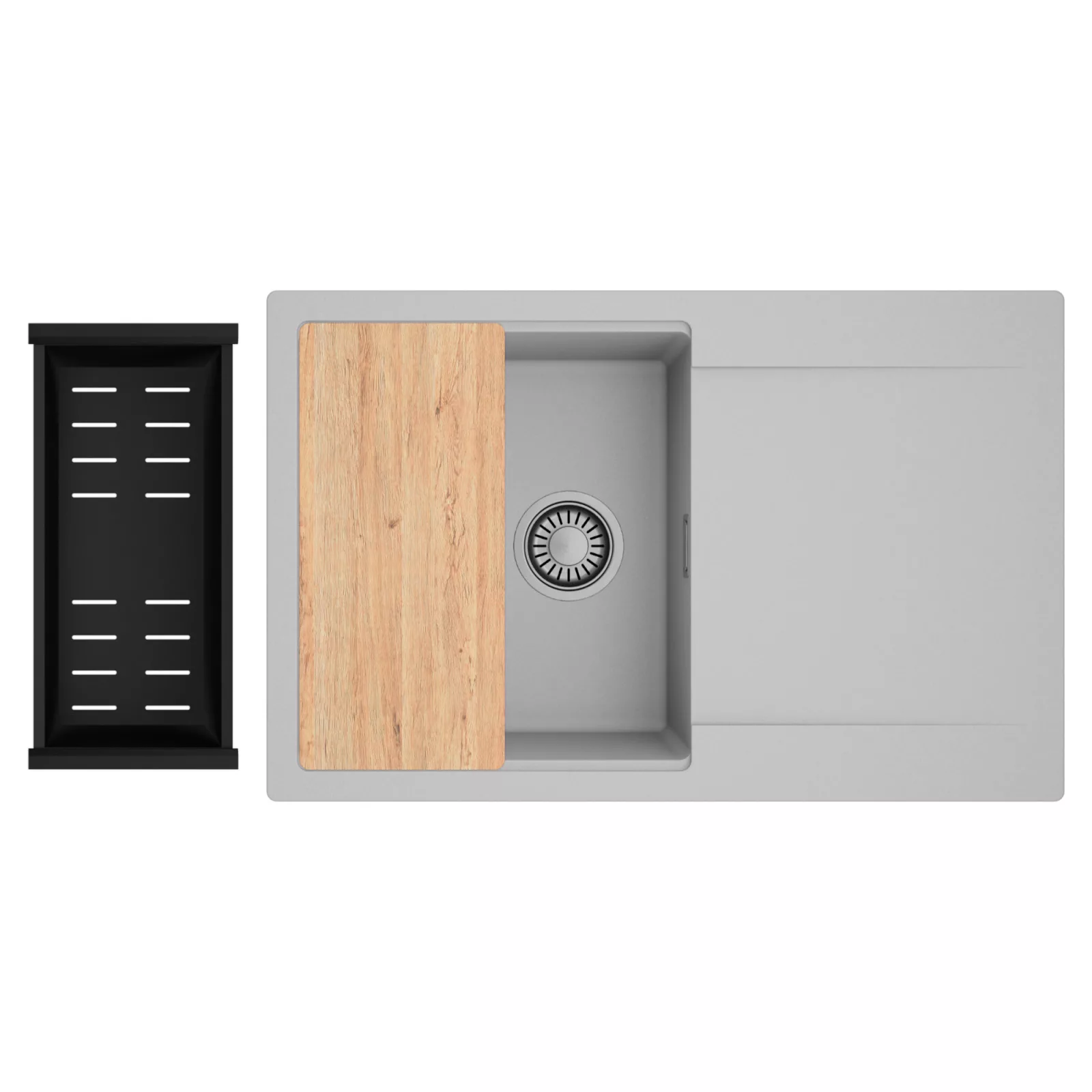 HD Onyx Grey 78 egymedencés mosogatótálca szett, vágódeszkával és csepegtetőkosárral, alpesi szürke