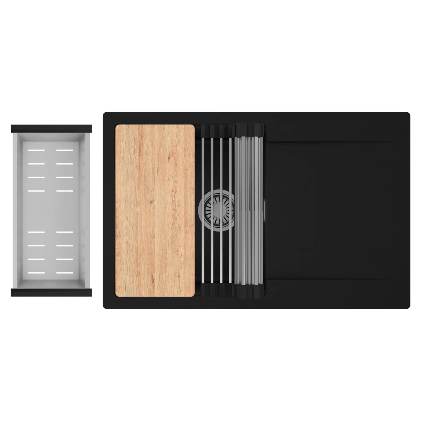 HD Onyx 78 egymedencés mosogatótálca szett, vágódeszkával, csepegtetőráccsal és kosárral, matt fekete