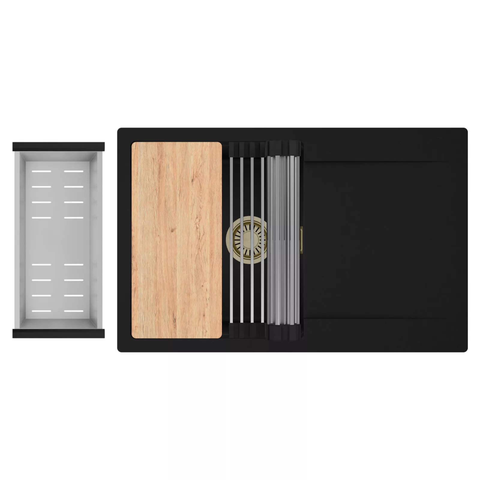 HD Onyx 78 egymedencés mosogatótálca szett, vágódeszkával, csepegtetőráccsal és kosárral, matt fekete