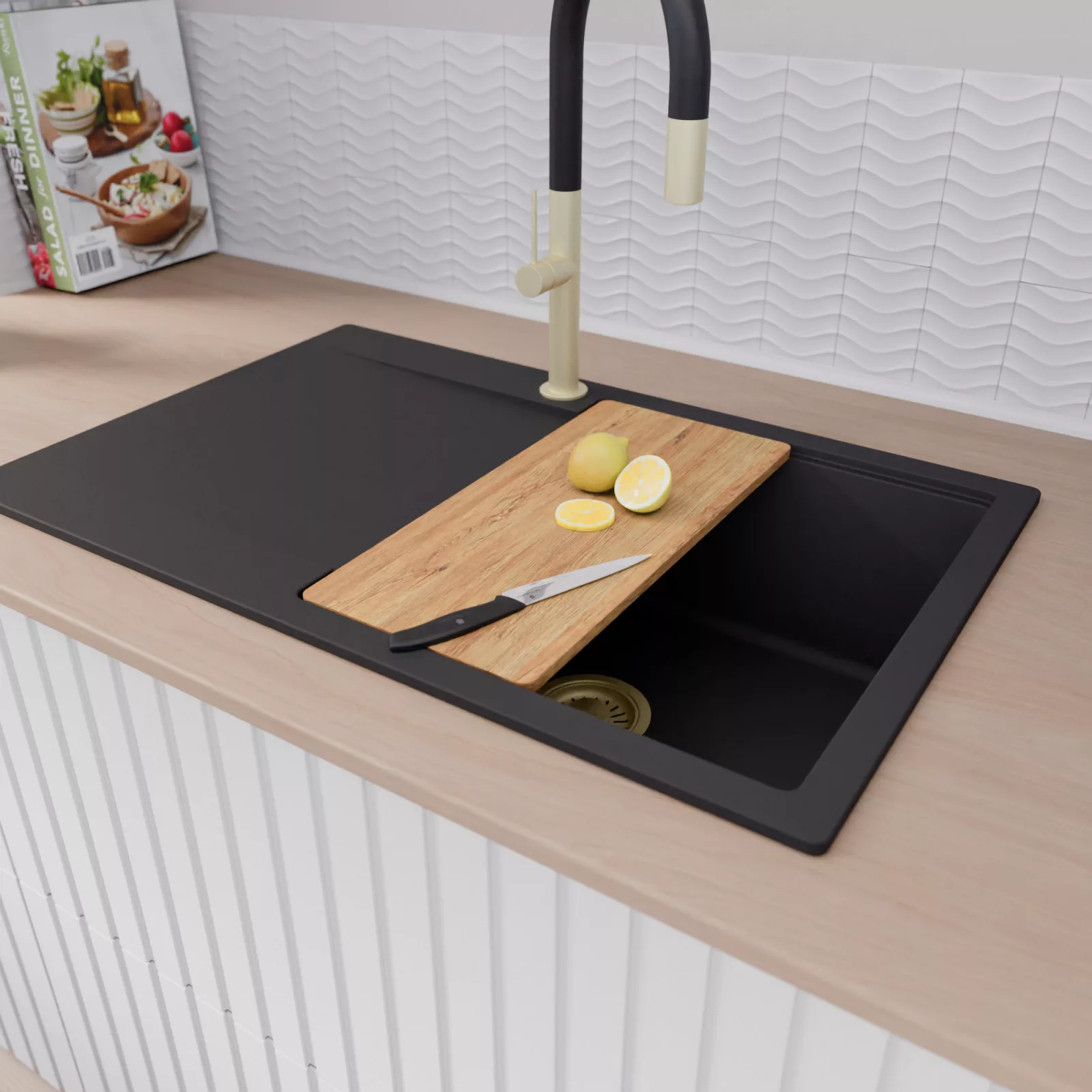 A mosogató prémium minőségű gránit kompozitból készült. Letisztult megjelenése mellett rendkívül praktikus, így bármilyen stílusú konyhába harmonikusan illeszkedik. A strapabíró gránit anyag hosszú távon is megbízható használatot garantál.