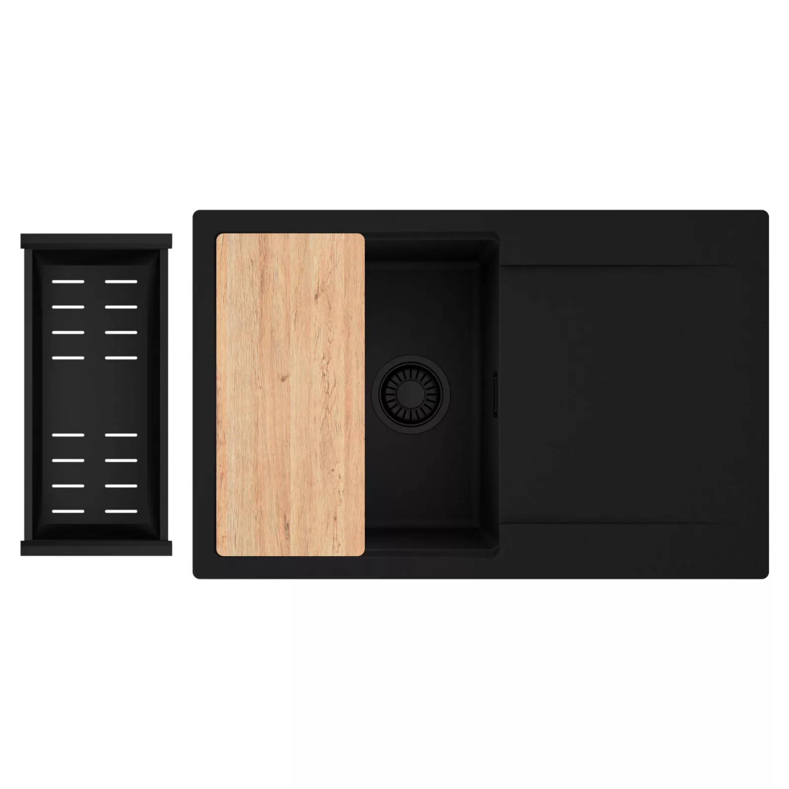 HD Onyx 78 egymedencés mosogatótálca szett, vágódeszkával és csepegtetőkosárral, matt fekete