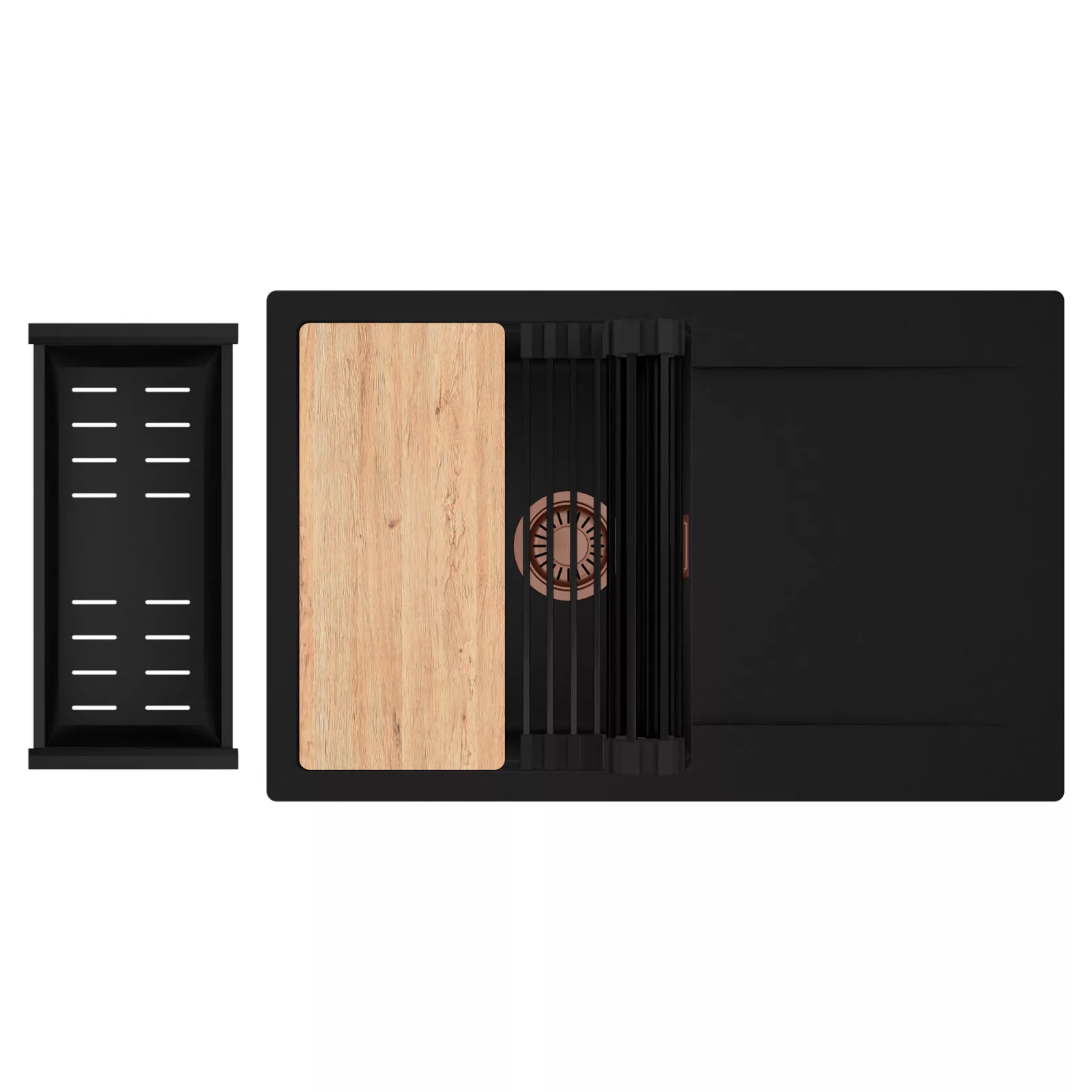 HD Onyx 78 egymedencés mosogatótálca szett, vágódeszkával, csepegtetőráccsal és kosárral, matt fekete