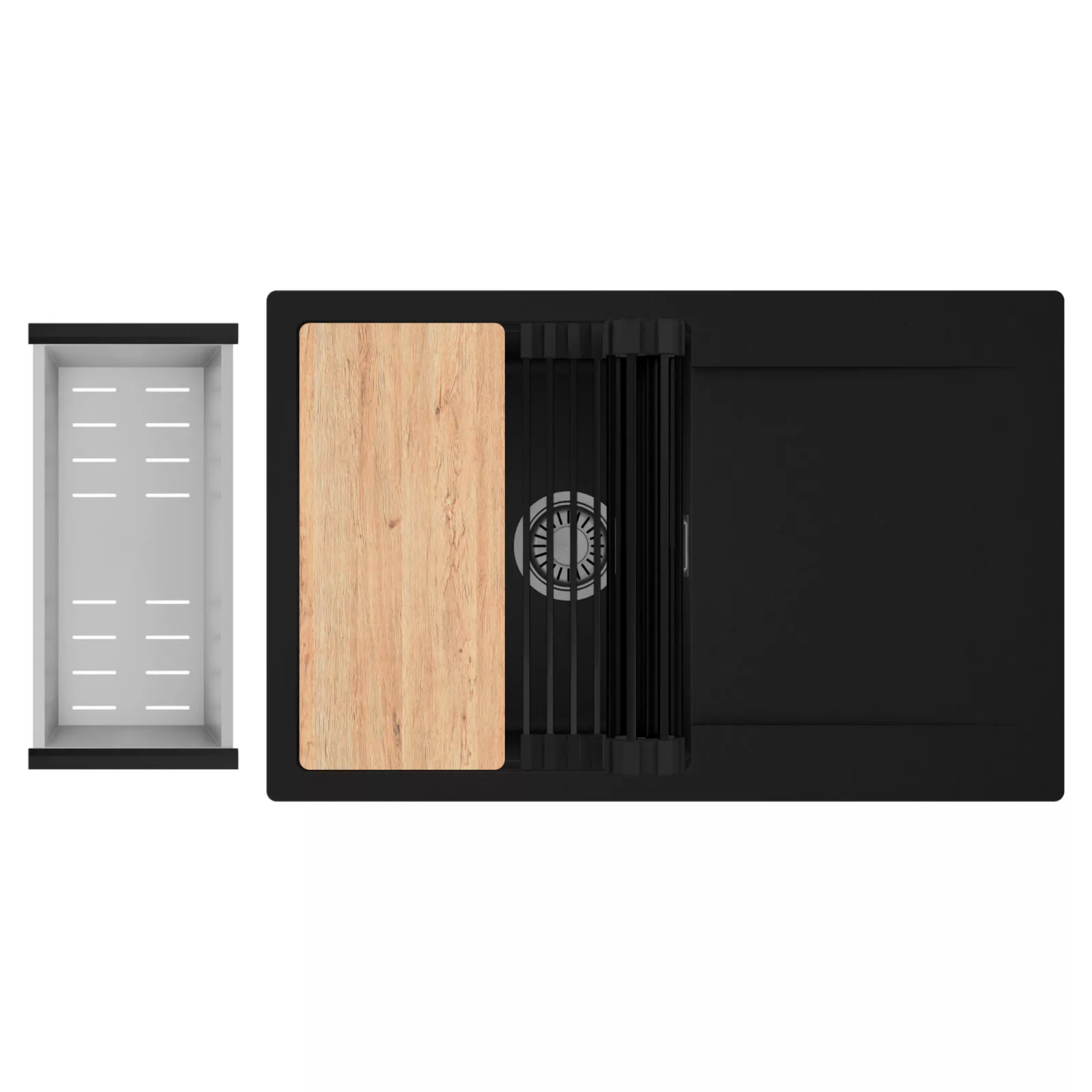 HD Onyx 78 egymedencés mosogatótálca szett, vágódeszkával, csepegtetőráccsal és kosárral, matt fekete