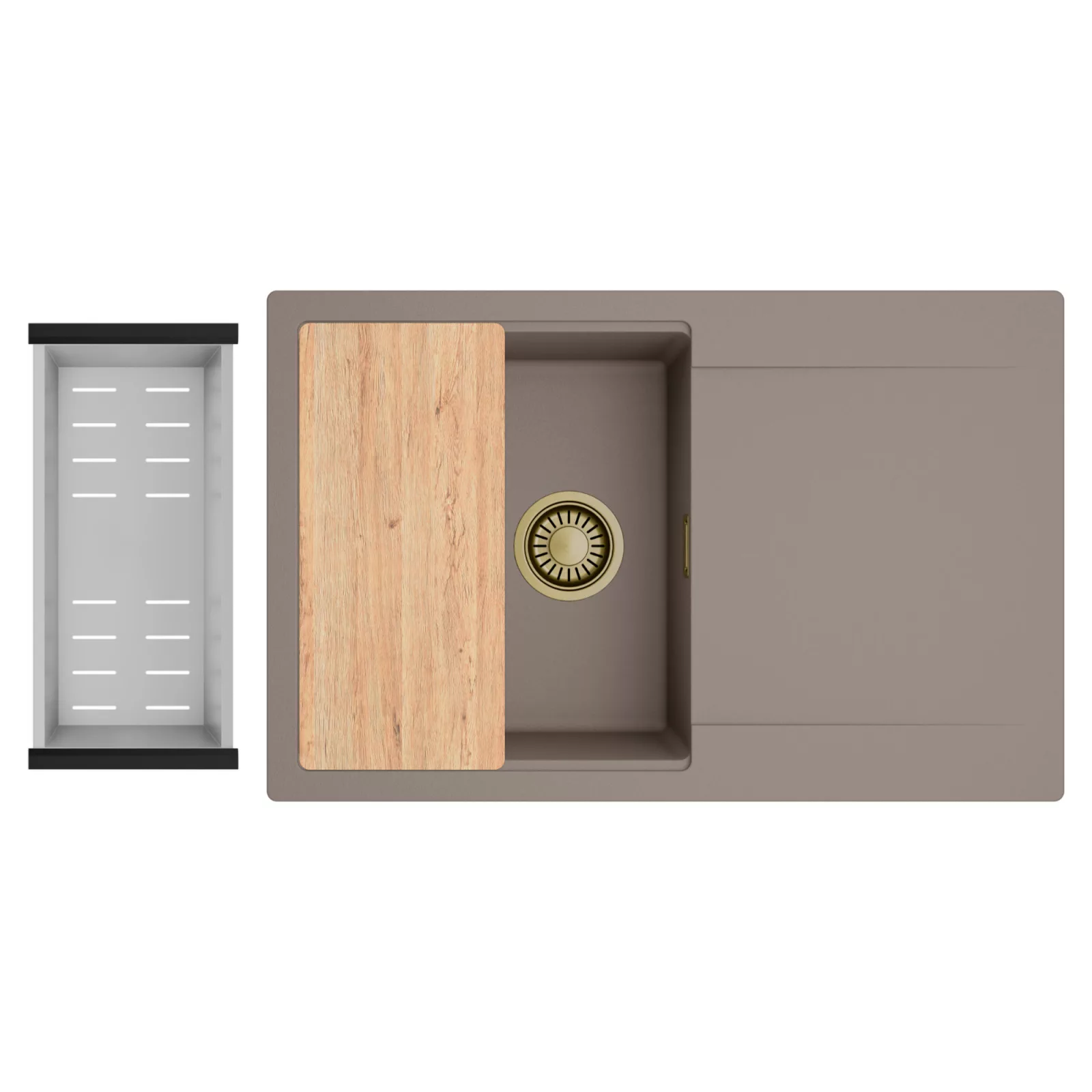 HD Onyx Tortora 78 egymedencés mosogatótálca szett, vágódeszkával és csepegtetőkosárral, tortora