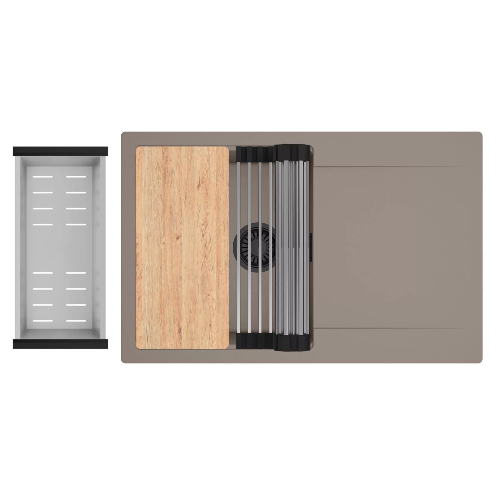 HD Onyx Tortora 78 egymedencés mosogatótálca szett, vágódeszkával, csepegtetőráccsal és kosárral, tortora