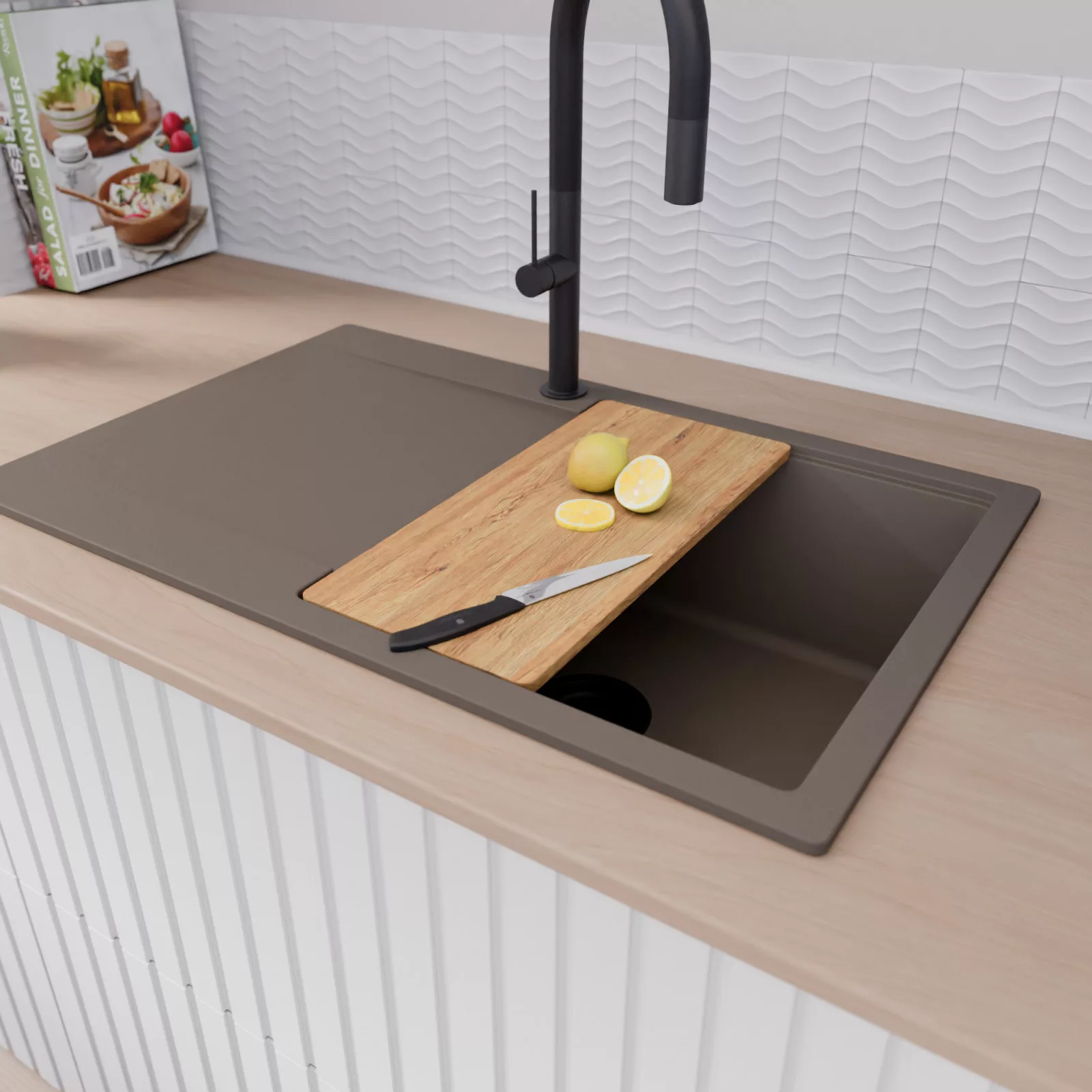 HD Onyx Tortora 78 egymedencés mosogatótálca szett, vágódeszkával, tortora