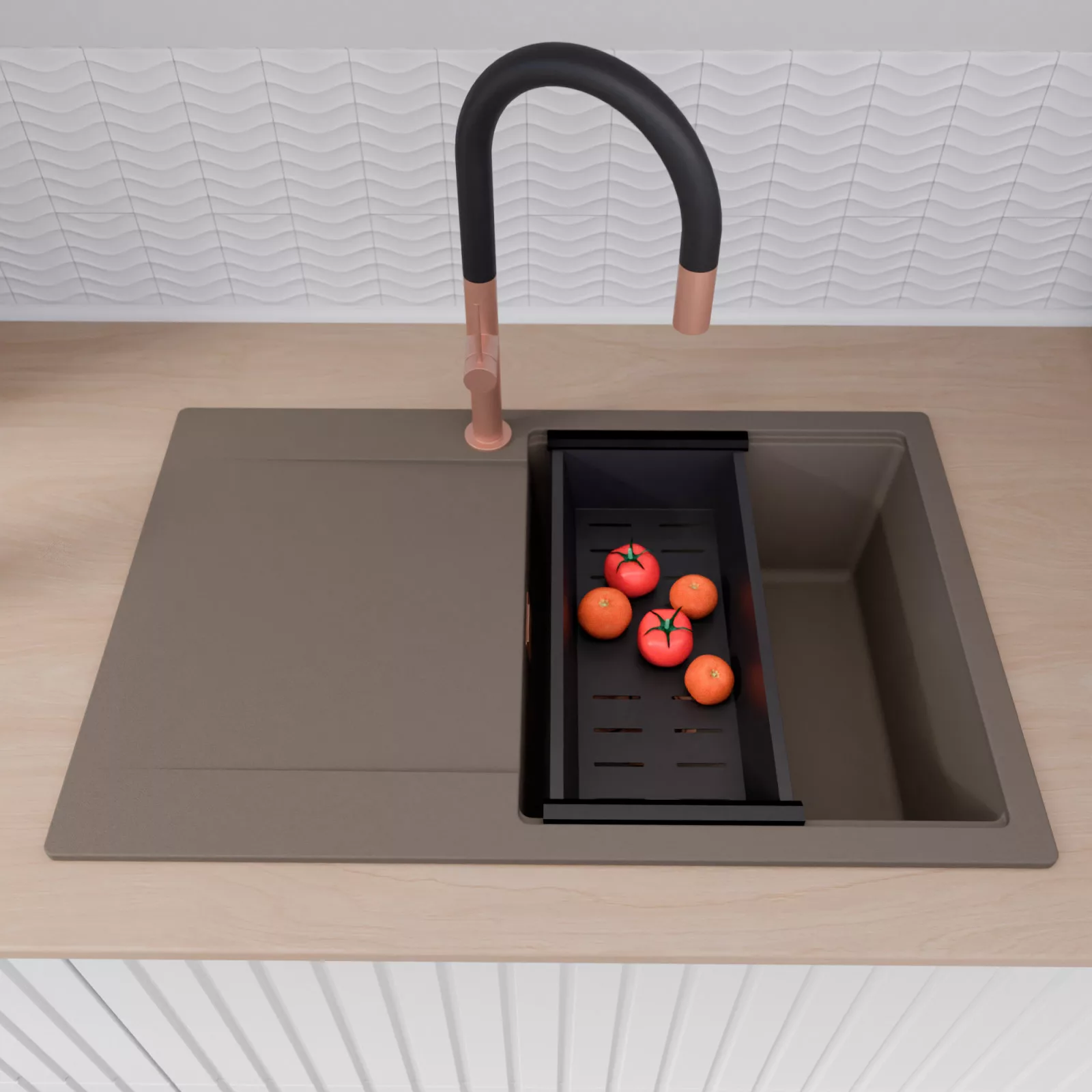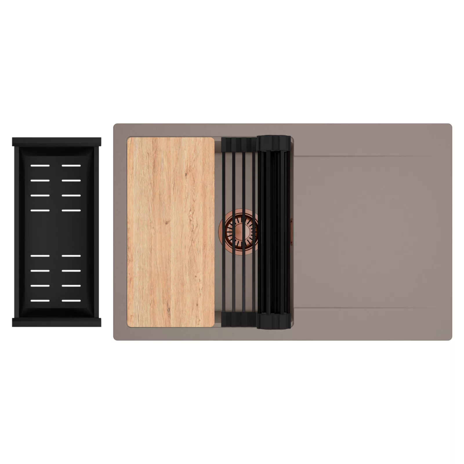 HD Onyx Tortora 78 egymedencés mosogatótálca szett, vágódeszkával, csepegtetőráccsal és kosárral, tortora