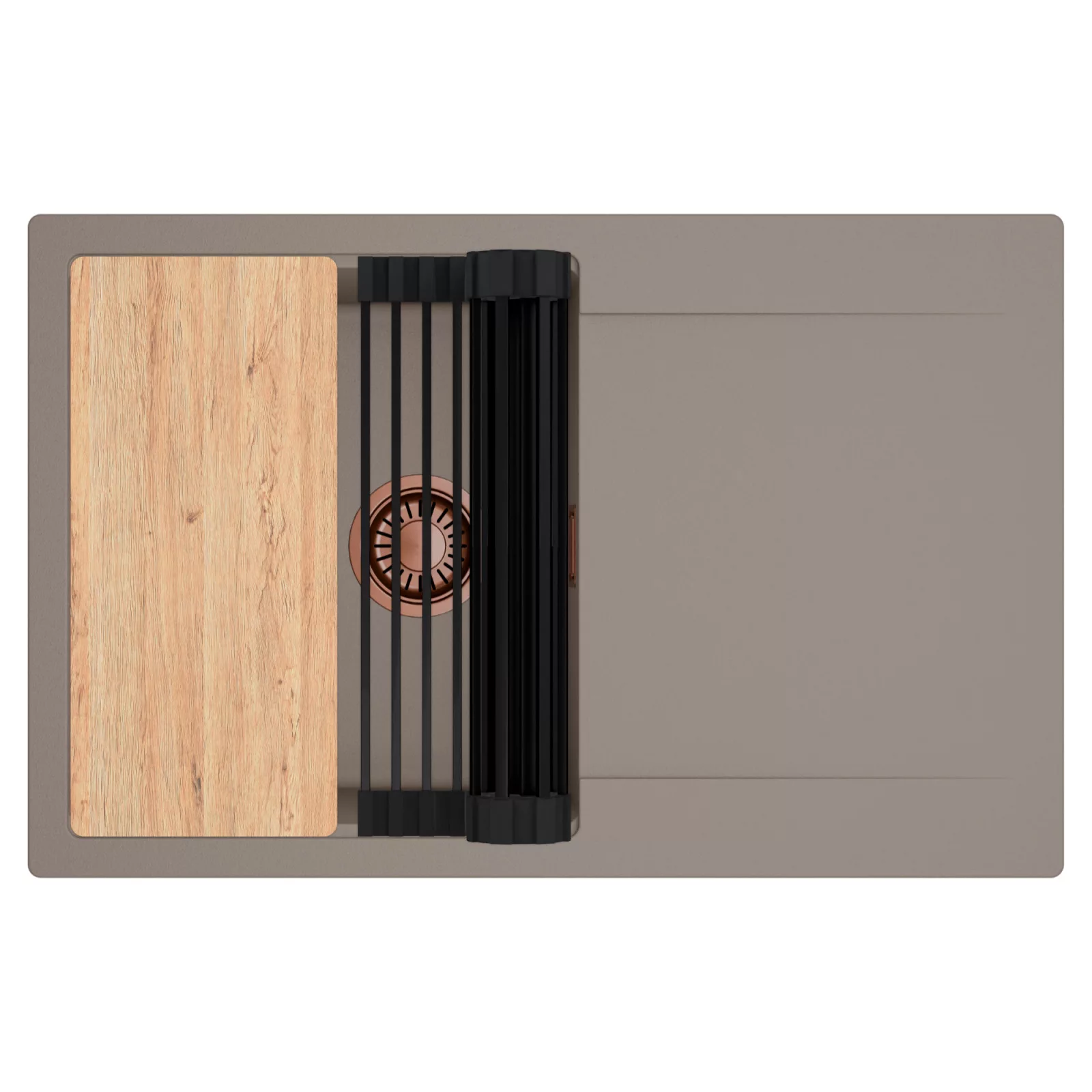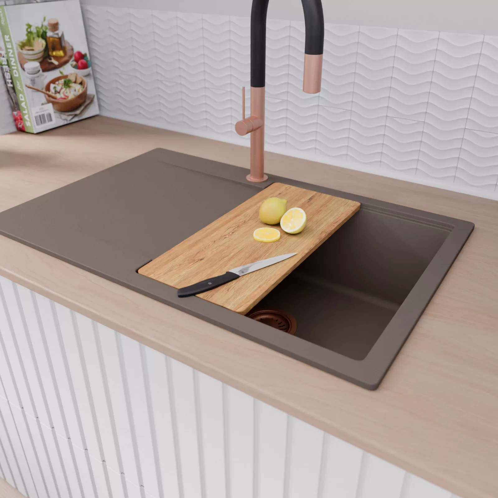 HD Onyx Tortora 78 egymedencés mosogatótálca szett, vágódeszkával és csepegtetőráccsal, tortora