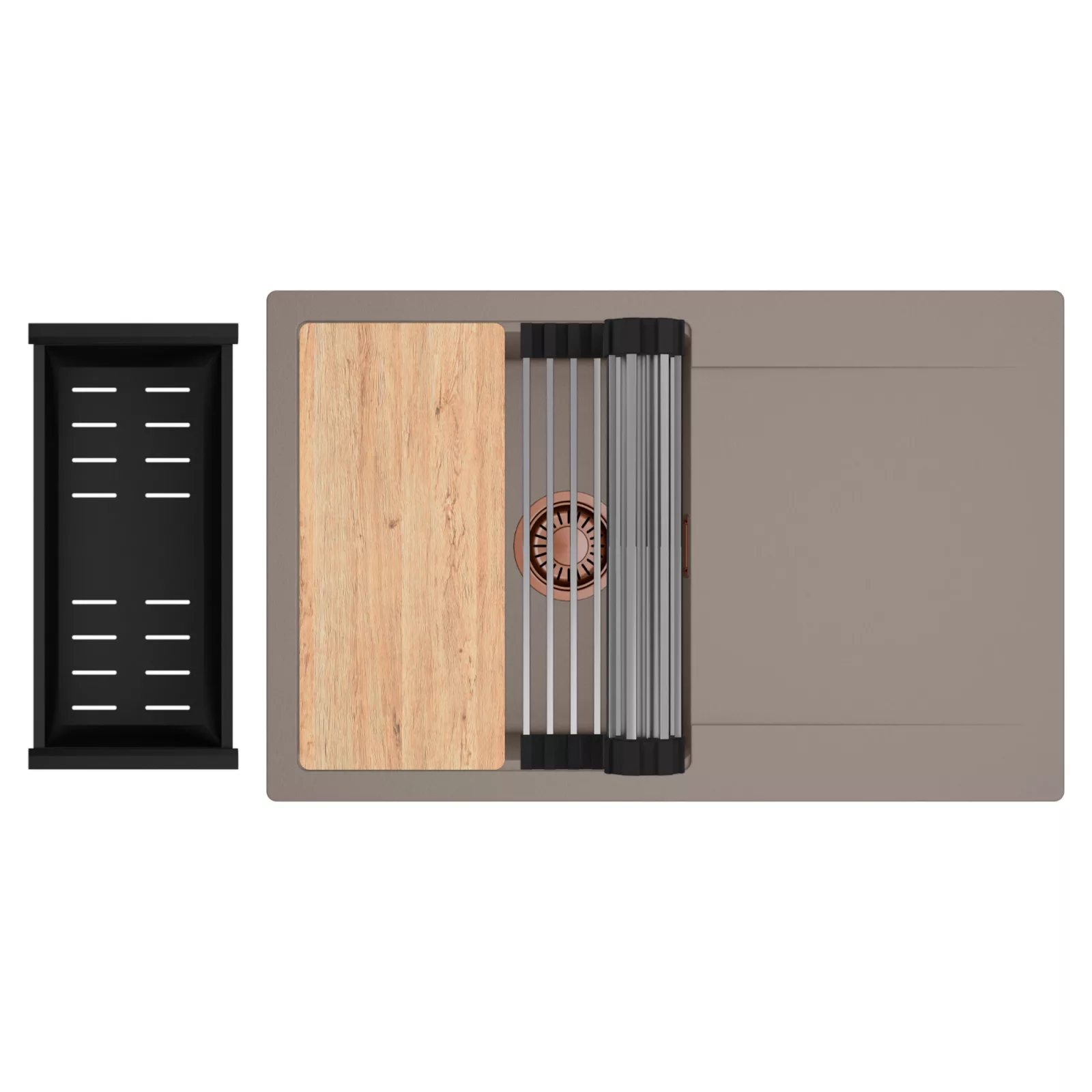 HD Onyx Tortora 78 egymedencés mosogatótálca szett, vágódeszkával, csepegtetőráccsal és kosárral, tortora