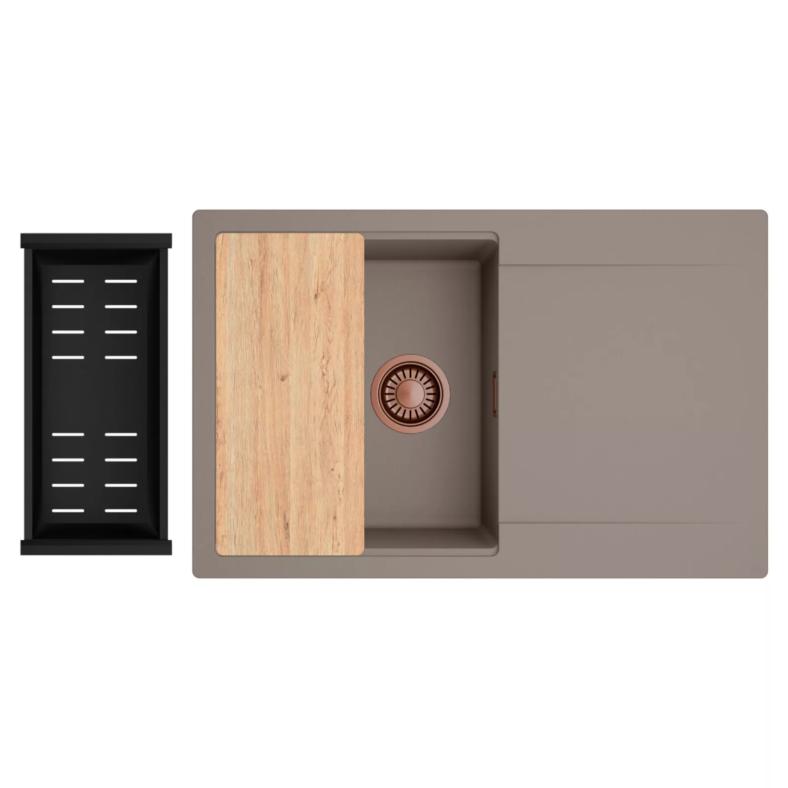 HD Onyx Tortora 78 egymedencés mosogatótálca szett, vágódeszkával és csepegtetőkosárral, tortora