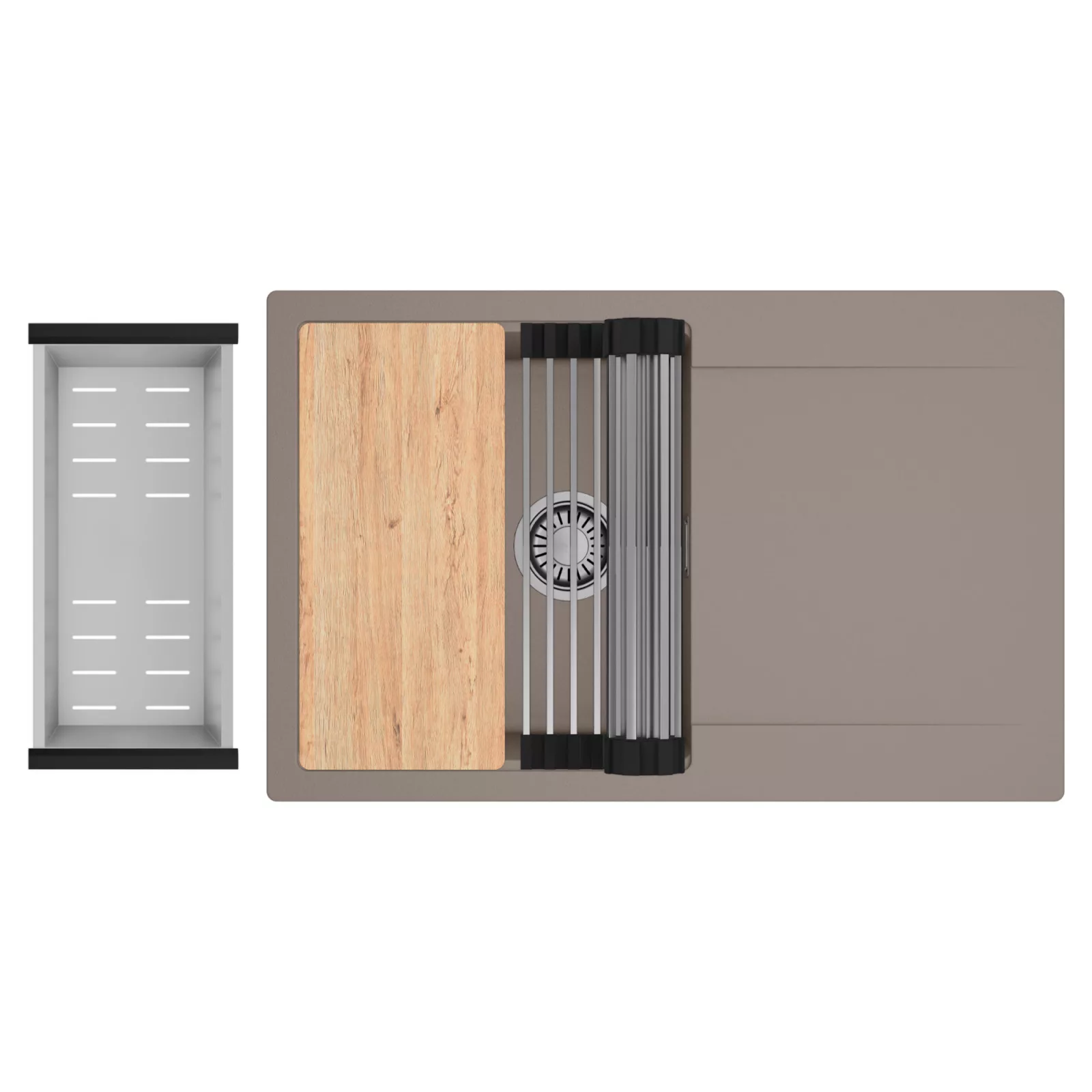 HD Onyx Tortora 78 egymedencés mosogatótálca szett, vágódeszkával, csepegtetőráccsal és kosárral, tortora