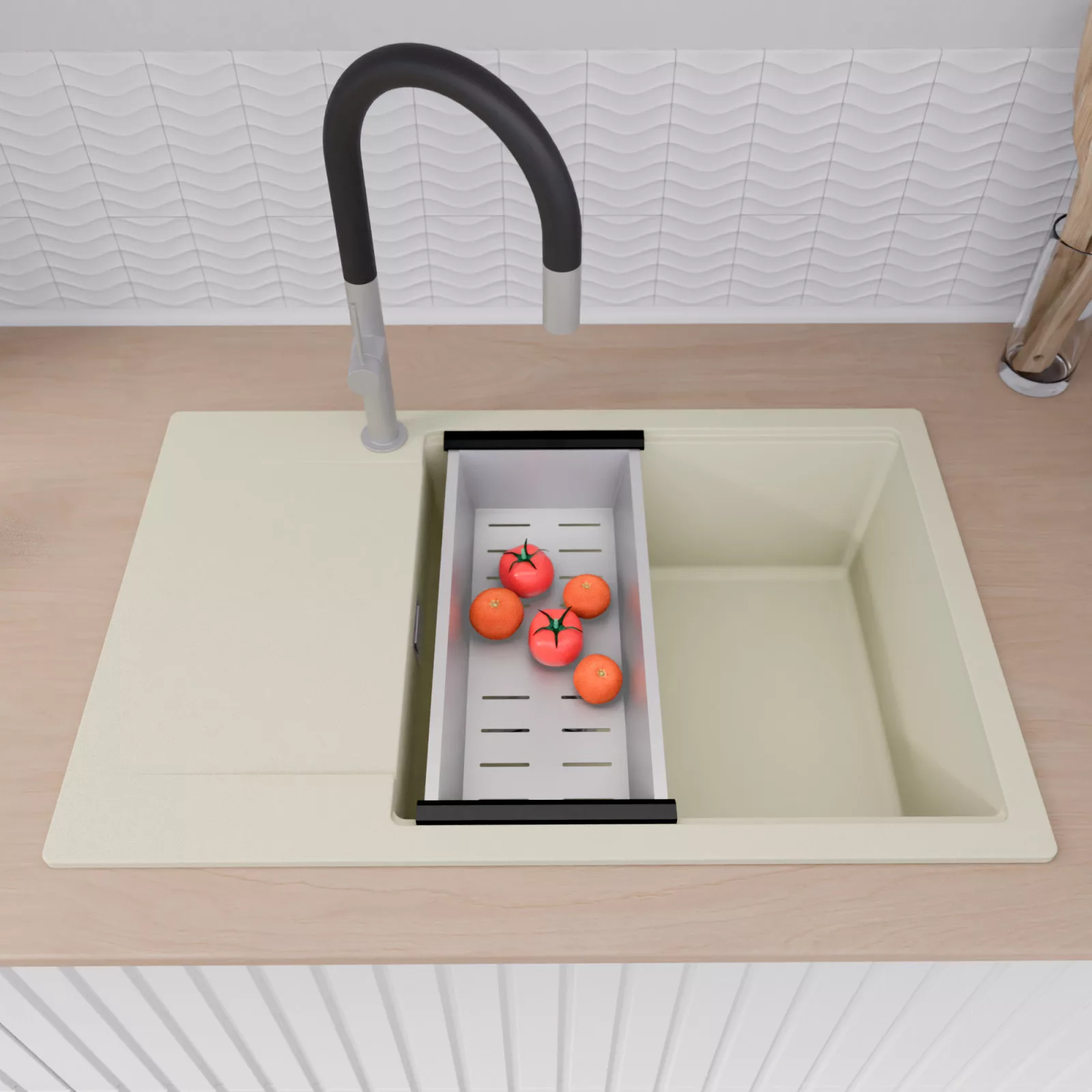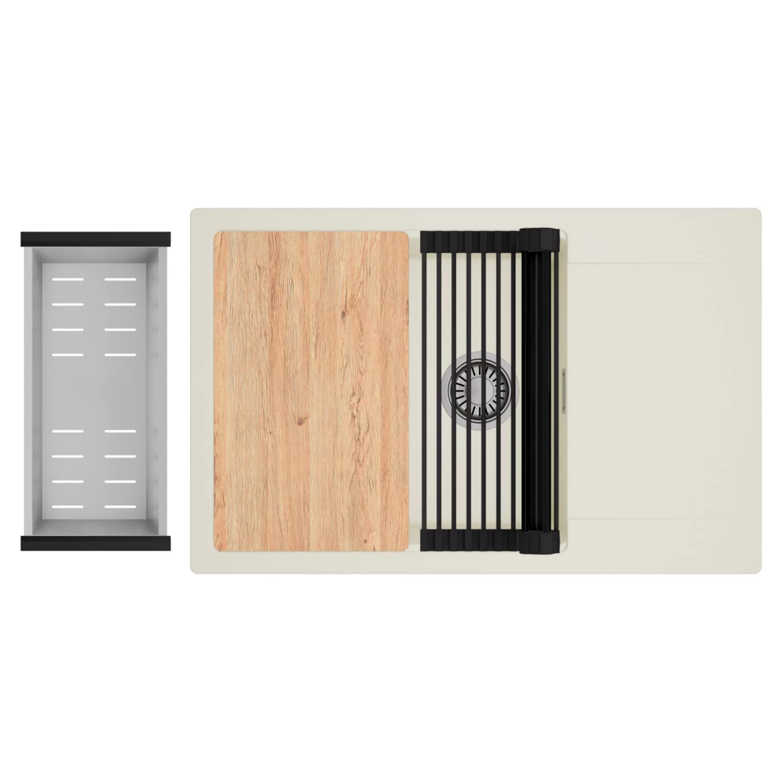 HD Onyx White 78-XL egymedencés mosogatótálca szett, vágódeszkával, csepegtetőráccsal és kosárral, tört fehér