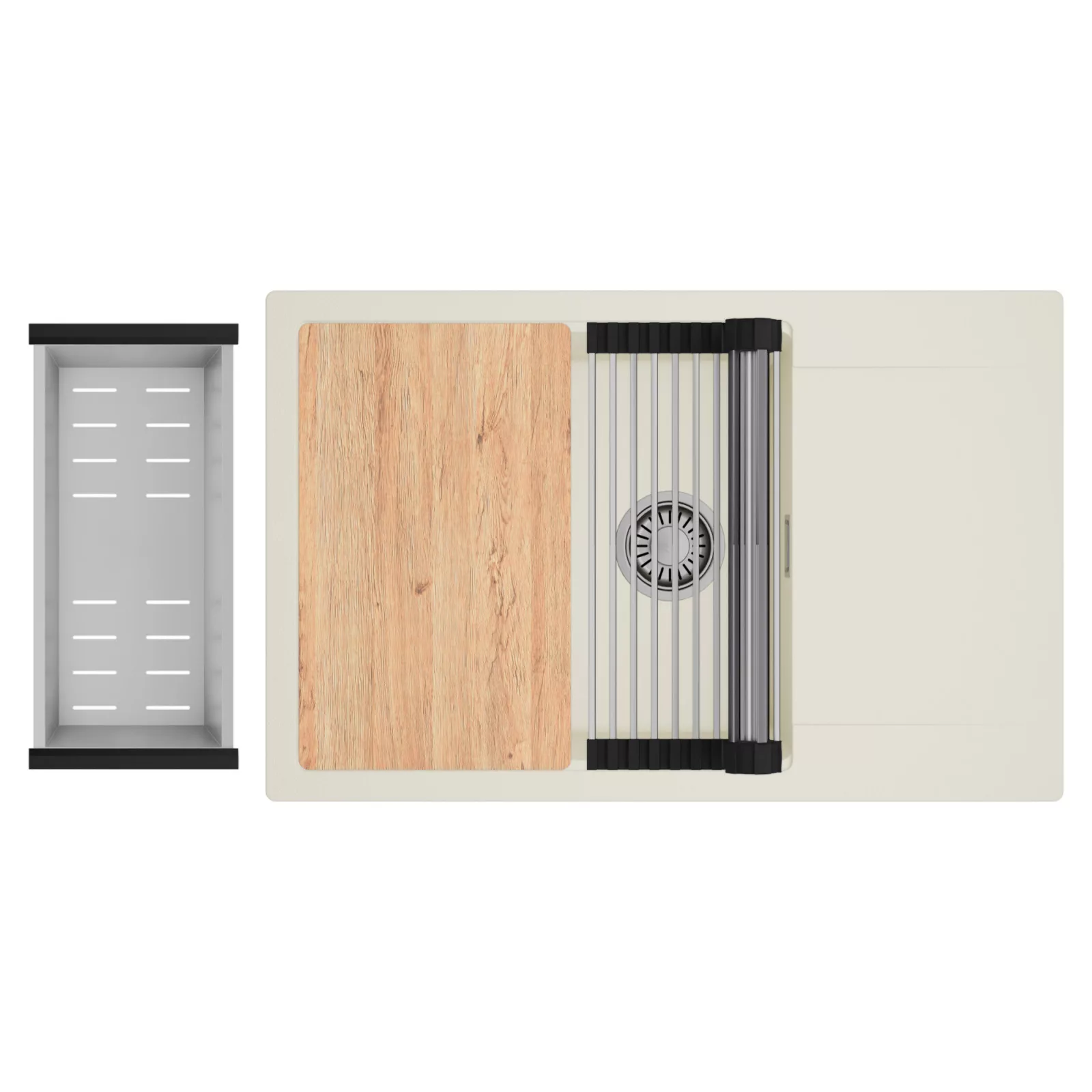 HD Onyx White 78-XL egymedencés mosogatótálca szett, vágódeszkával, csepegtetőráccsal és kosárral, tört fehér