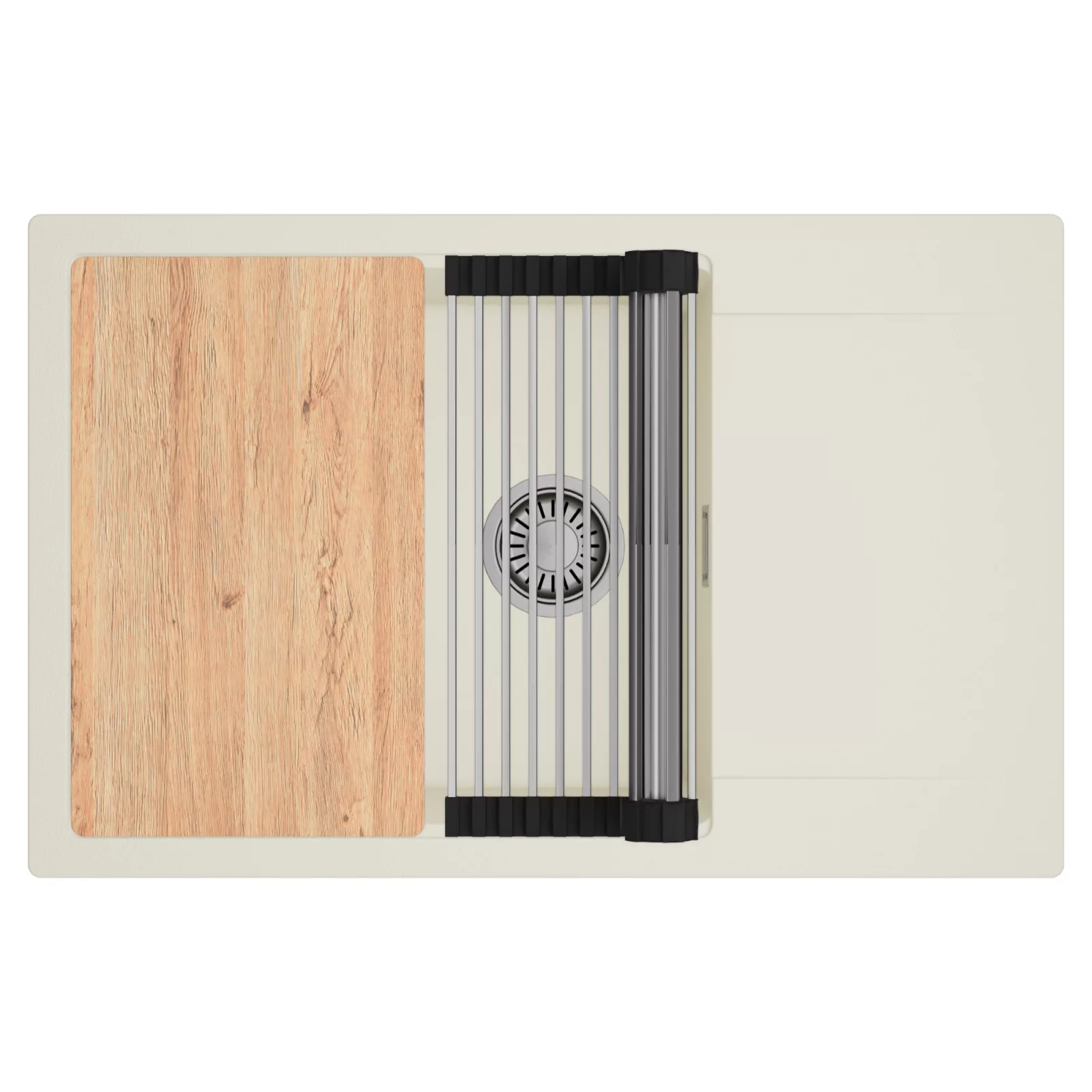 HD Onyx White 78-XL egymedencés mosogatótálca szett, vágódeszkával és csepegtetőráccsal, tört fehér