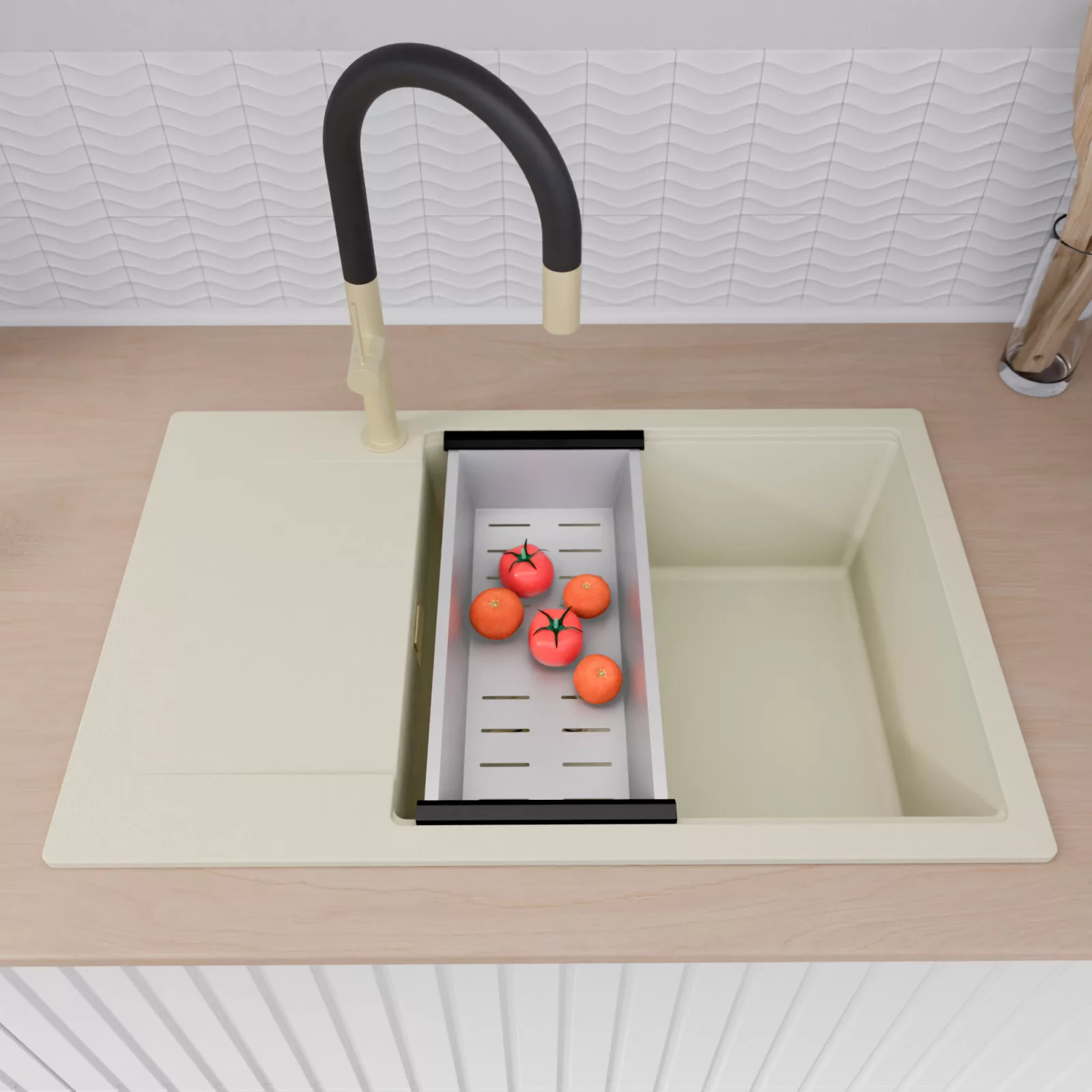 A HomeDepo SmartEdge Többfunkciós Peremrendszer egy intelligensen kialakított peremmegoldás, amely a mosogatót kompakt, mégis teljes értékű konyhai térré alakítja a mindennapok során. A speciális peremkialakítás lehetővé teszi a vágódeszka, a feltekerhető csepegtető rács, a gyümölcsmosó és a csepegtető kosár stabil, biztonságos és kényelmes elhelyezését közvetlenül a mosogató speciális belső peremén. A kiegészítők síkban csúsztathatók és szabadon kombinálhatók, így extra munkafelületet nyersz anélkül, hogy helyet foglalnál a konyhapulton – a mosogató valódi többfunkciós központtá válik.