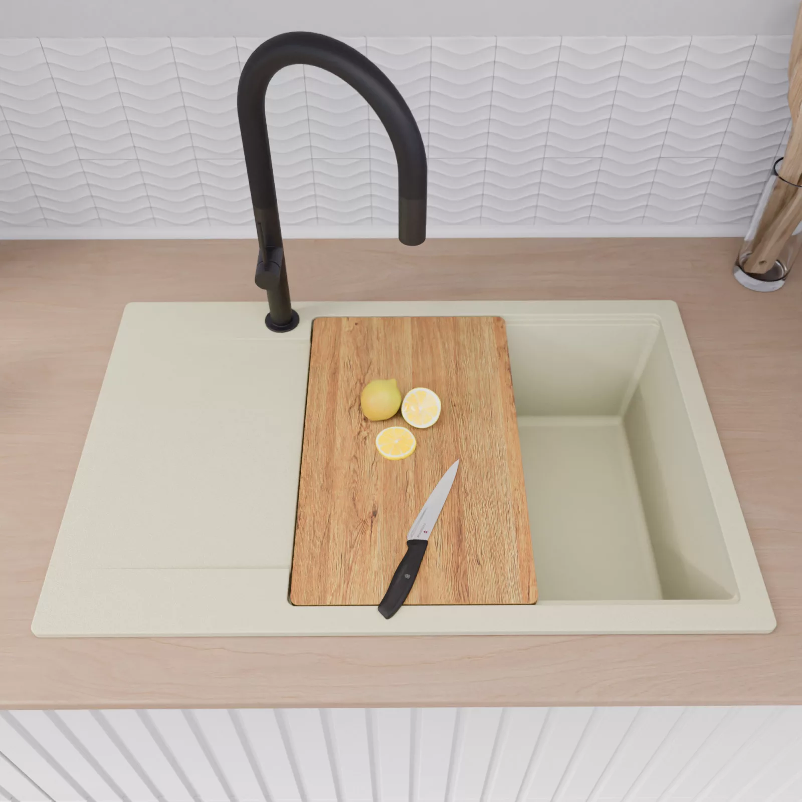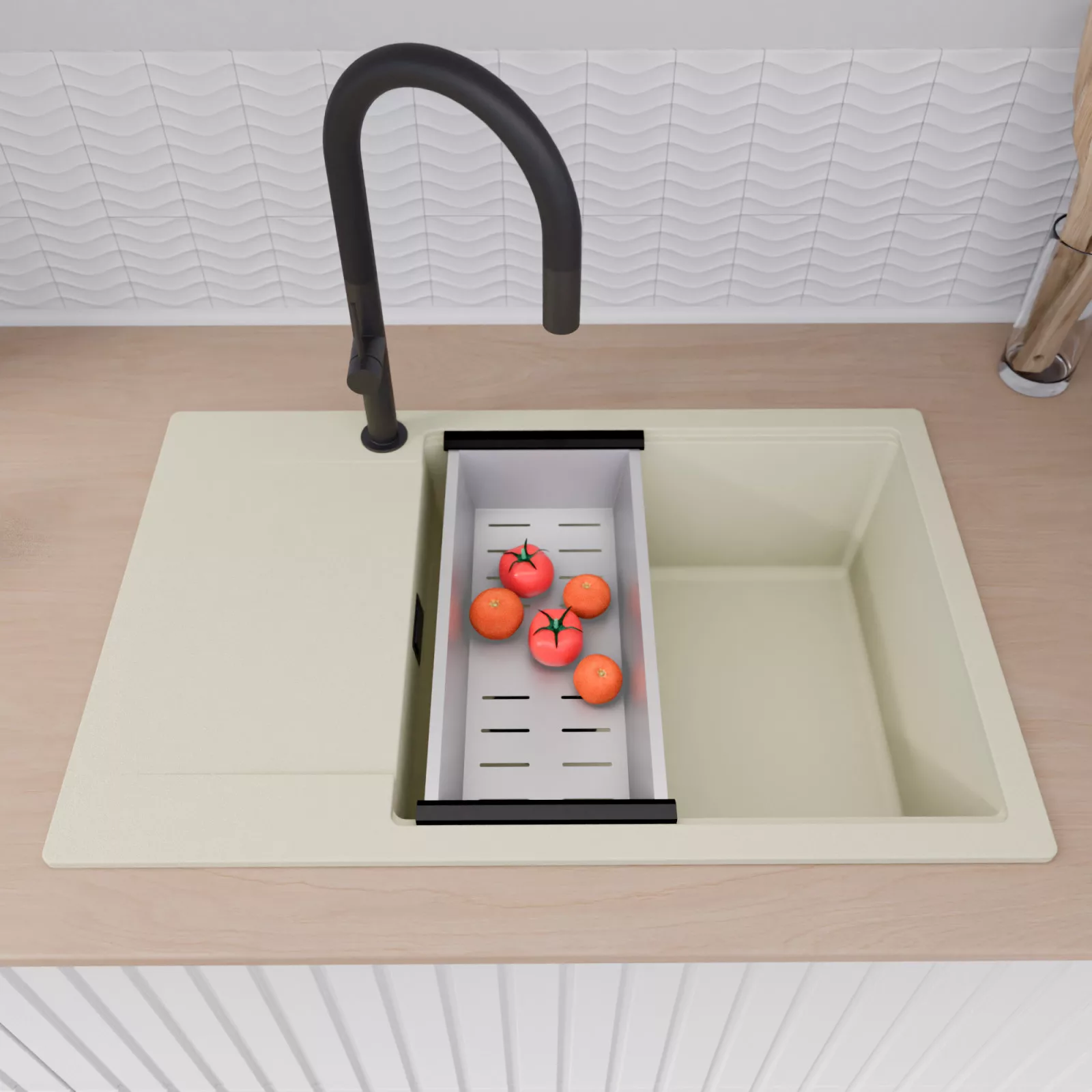 A mosogató prémium minőségű gránit kompozitból készült. Letisztult megjelenése mellett rendkívül praktikus, így bármilyen stílusú konyhába harmonikusan illeszkedik. A strapabíró gránit anyag hosszú távon is megbízható használatot garantál.