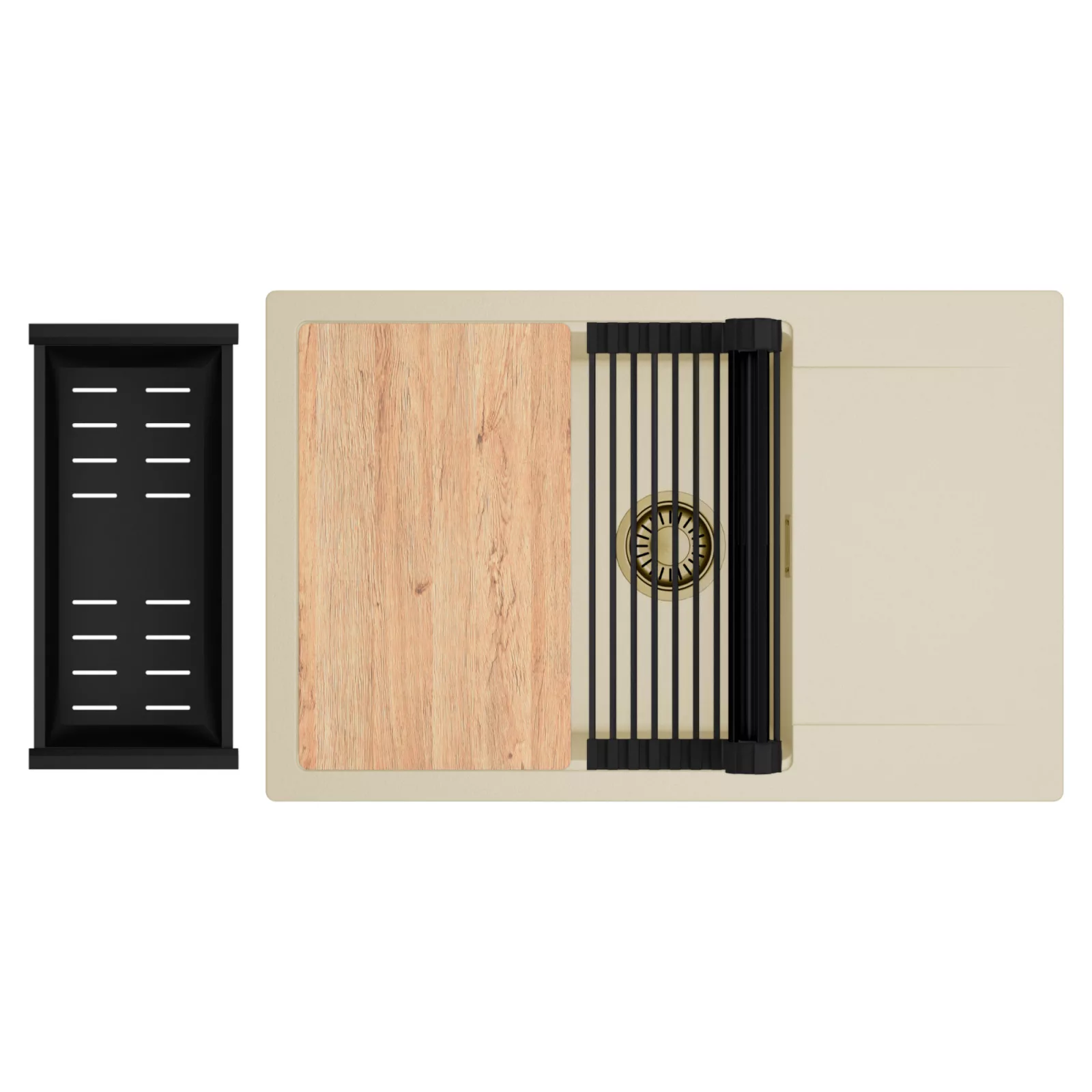 HD Onyx Beige 78-XL egymedencés mosogatótálca szett, vágódeszkával, csepegtetőráccsal és kosárral, soft bézs