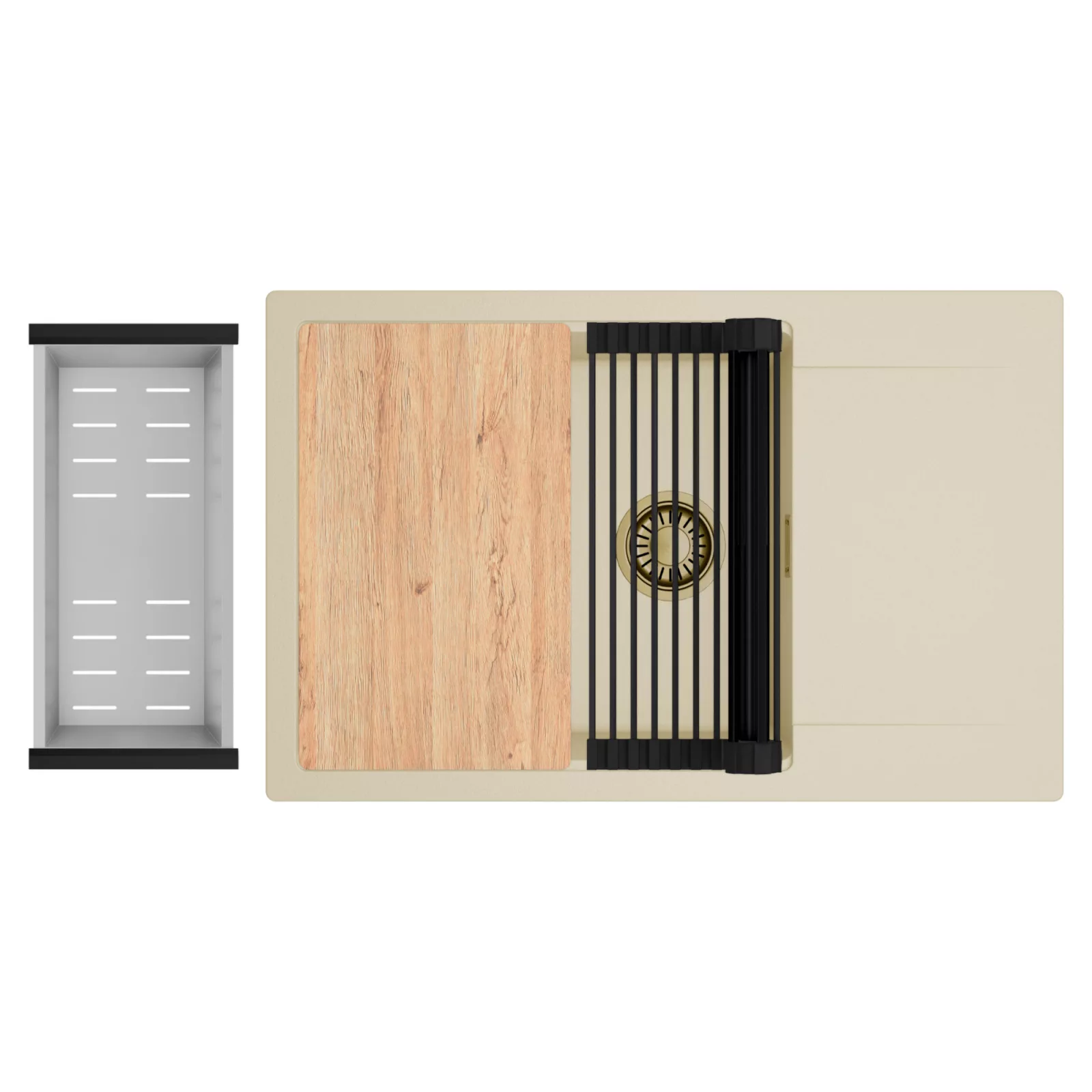HD Onyx Beige 78-XL egymedencés mosogatótálca szett, vágódeszkával, csepegtetőráccsal és kosárral, soft bézs