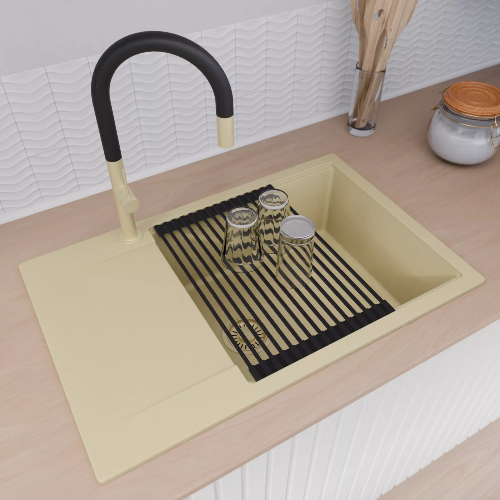 HD Onyx Beige 78-XL egymedencés mosogatótálca szett, vágódeszkával és csepegtetőráccsal, soft bézs