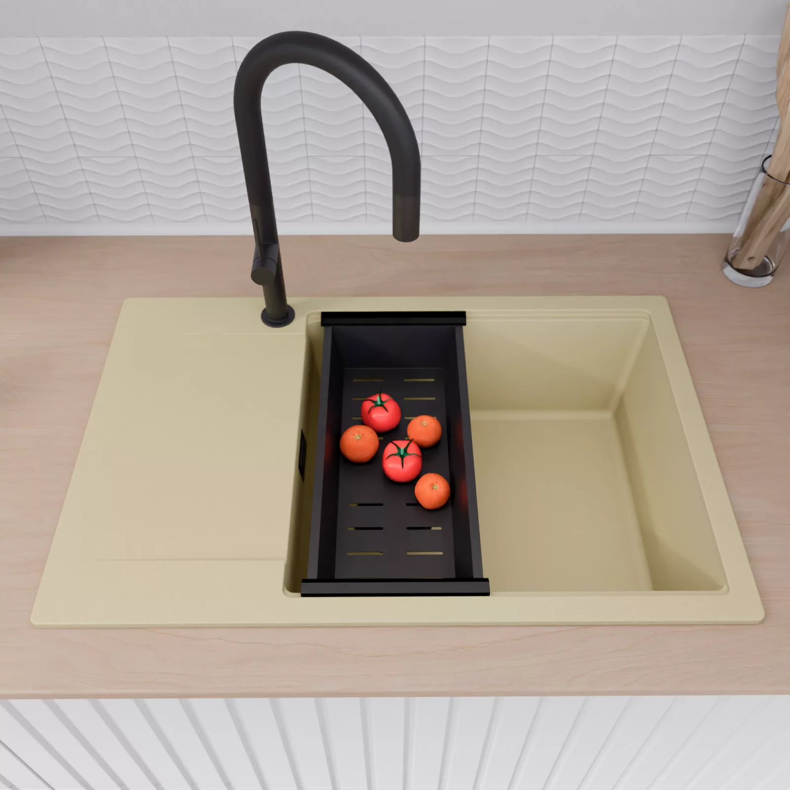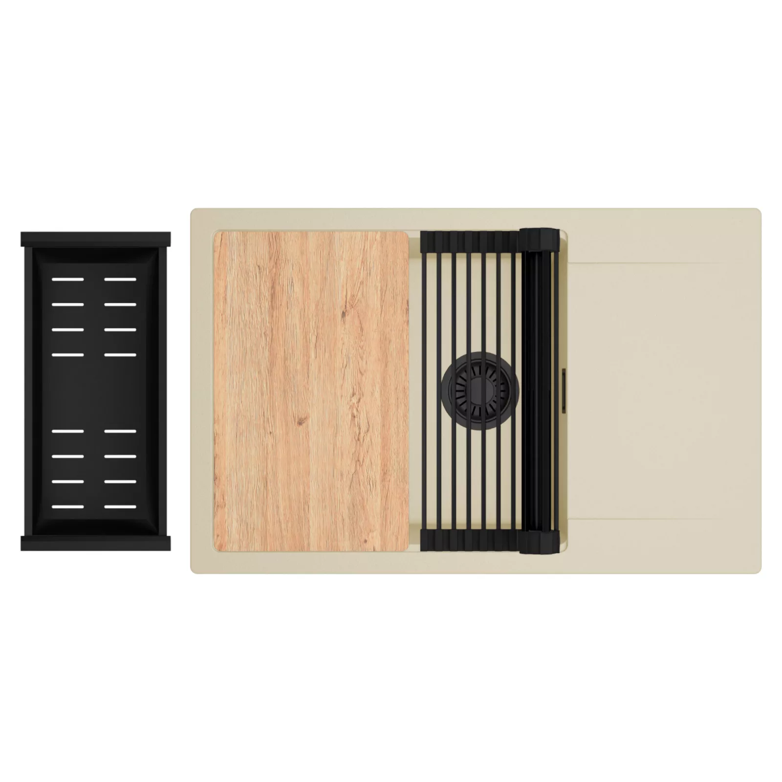 HD Onyx Beige 78-XL egymedencés mosogatótálca szett, vágódeszkával, csepegtetőráccsal és kosárral, soft bézs