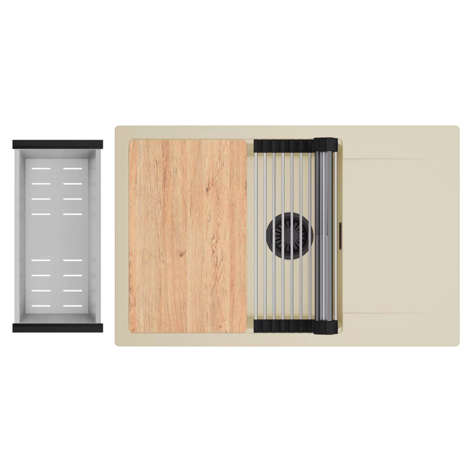 HD Onyx Beige 78-XL egymedencés mosogatótálca szett, vágódeszkával, csepegtetőráccsal és kosárral, soft bézs