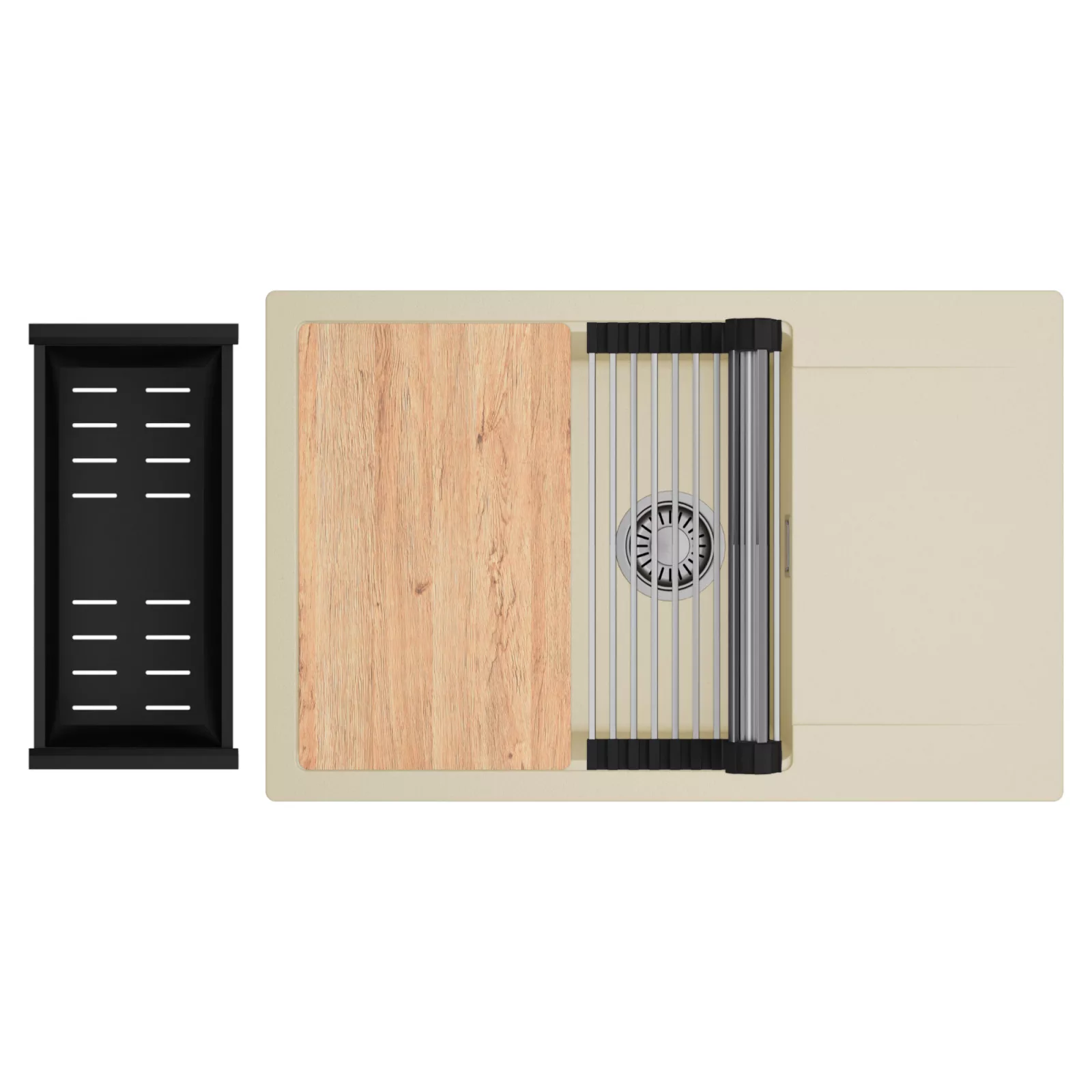 HD Onyx Beige 78-XL egymedencés mosogatótálca szett, vágódeszkával, csepegtetőráccsal és kosárral, soft bézs