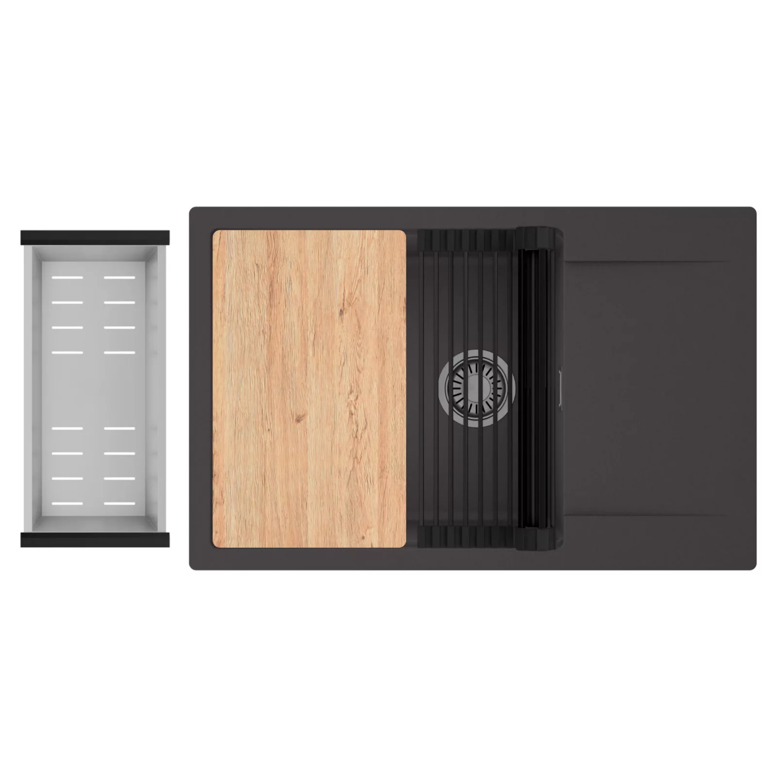 HD Onyx 78-XL egymedencés mosogatótálca szett, vágódeszkával, csepegtetőráccsal és kosárral, matt antracit