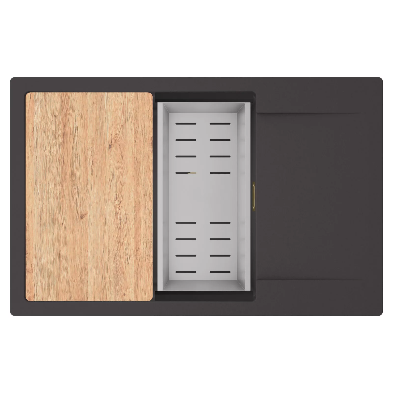 HD Onyx 78-XL egymedencés mosogatótálca szett, vágódeszkával és csepegtetőkosárral, matt antracit