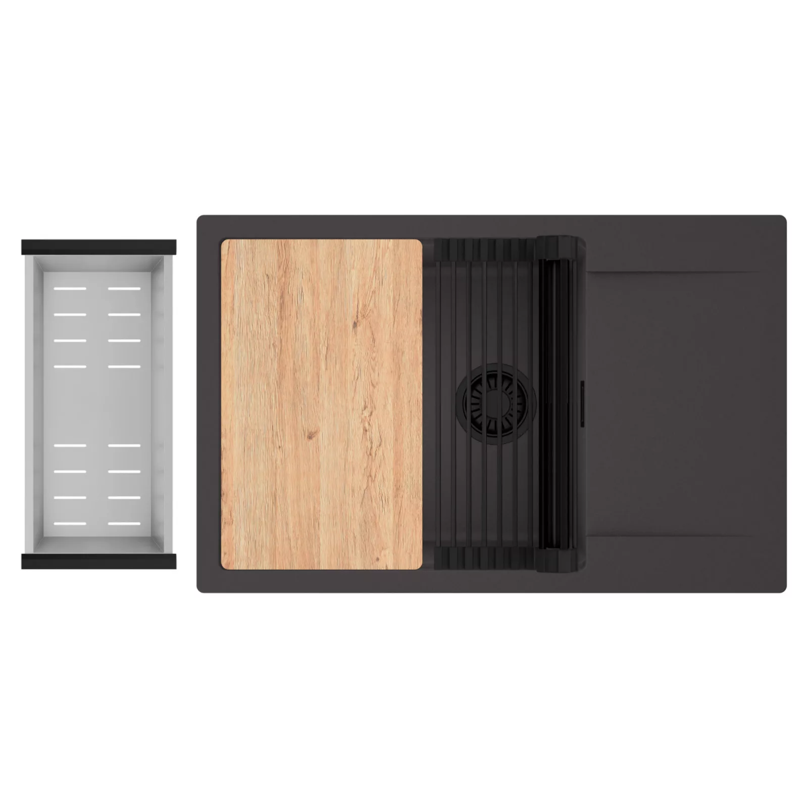HD Onyx 78-XL egymedencés mosogatótálca szett, vágódeszkával, csepegtetőráccsal és kosárral, matt antracit