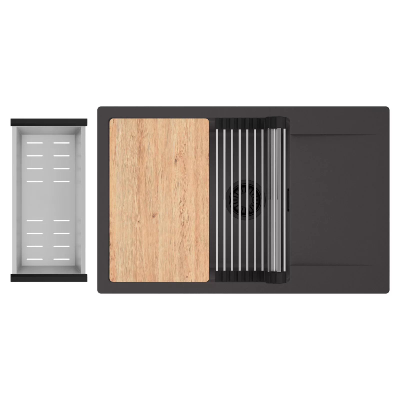 HD Onyx 78-XL egymedencés mosogatótálca szett, vágódeszkával, csepegtetőráccsal és kosárral, matt antracit