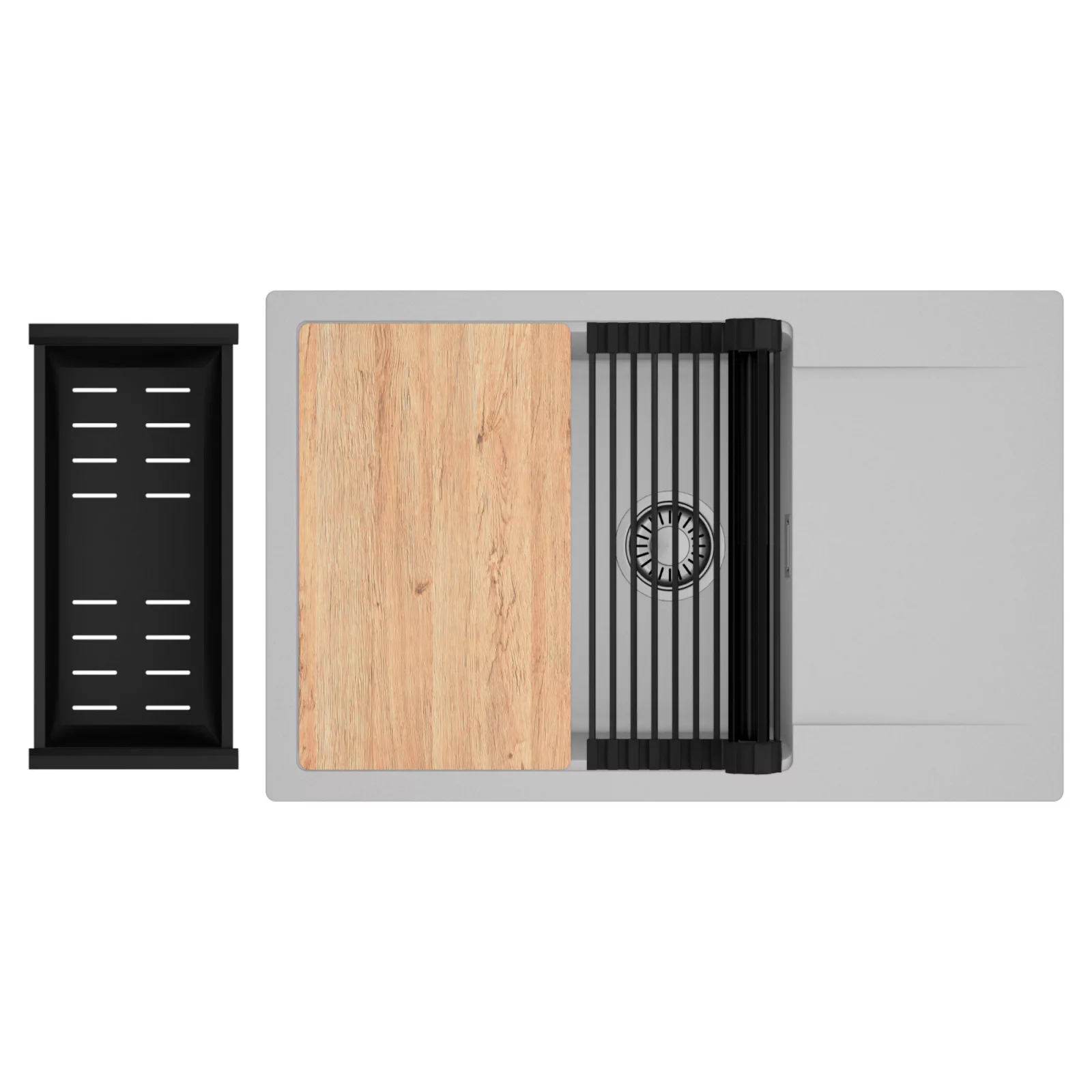 HD Onyx Grey 78-XL egymedencés mosogatótálca szett, vágódeszkával, csepegtetőráccsal és kosárral, alpesi szürke